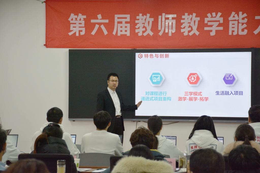 赓续初心齐并进,聚焦课堂展风采。近日,为期三天的学院第六届教师教学能力大赛圆满落幕。各系(院、部)选拔推荐的27组优秀教学团队参加决赛。党委书记马文刚、院长许征程亲临赛场观摩,副院长黄淑敏全程指导。