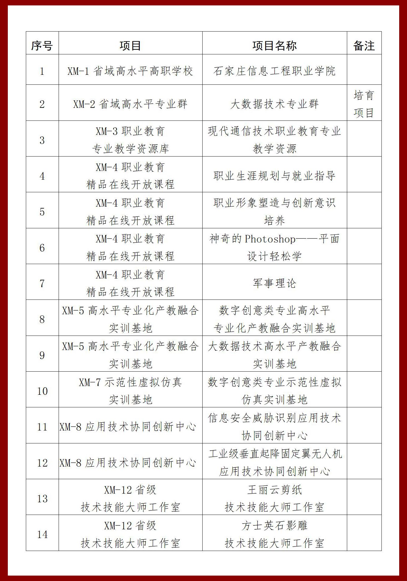近日,河北省教育厅发布了《关于河北省高等职业教育创新发展行动计划(2022-2025年)项目遴选结果的公示》,我院14个项目获批立项,成功入选省域高水平高职学校立项建设单位。