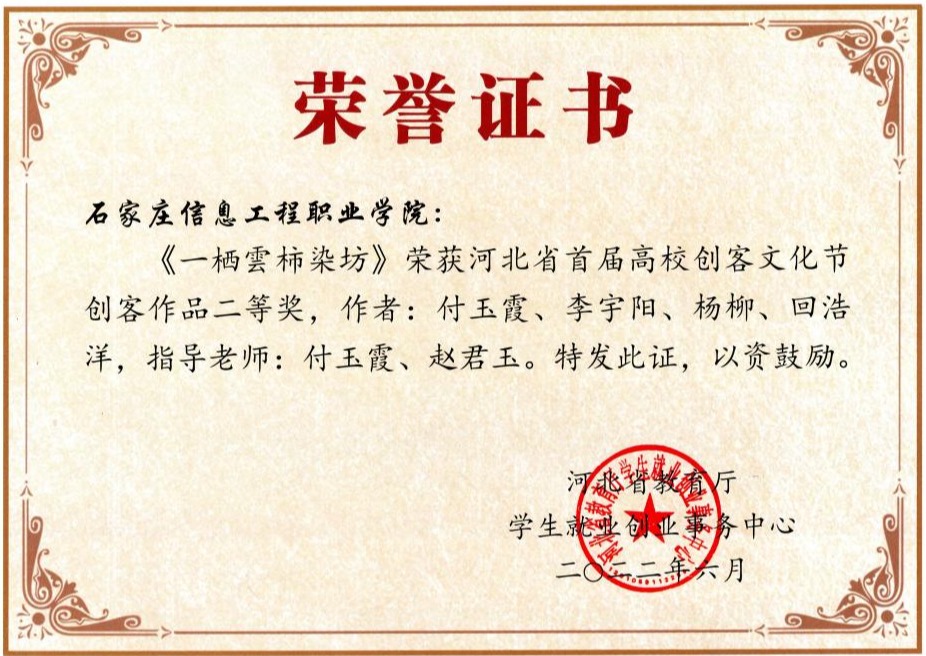 近日,在2022第三届京津冀创客峰会暨河北省首届高校创客文化节上,我院推荐的《一栖雲柿染坊》项目获得二等奖,《“与光”万物有灵系列文创作品》《百年红船》两个项目获得三等奖。