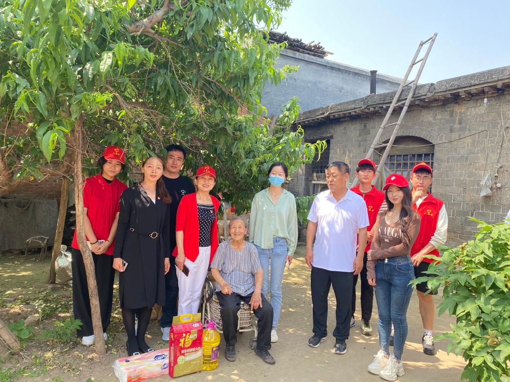 最后,在九门乡政府纪委书记张伟陪同下,学院一行人来到南屯村走访慰问了老党员和困难家庭,对他们的家庭情况、身体状况以及生产生活中面临的实际困难进行了深入细致的了解,并为他们带去了生活慰问品,让老党员和困难家庭感受到了党和政府的关心和关怀。