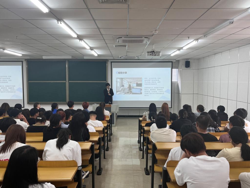 为了使同学们能够进一步了解比赛内容,激发大学生参与技能竞赛的热情,增强职业教育吸引力,真正做到以赛促学,以学促用,开展职业技能大赛获奖学生经验分享交流活动。来自电子商务专业、市场营销专业、现代物流管理专业、跨境电子商务专业的5名获奖学生为200余名学生代表分享参赛经历、经验和收获。