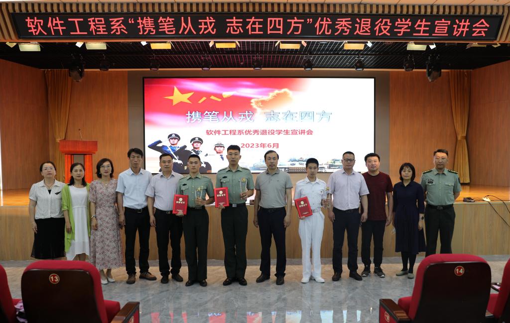 为贯彻落实国家征兵政策,鼓励和引导大学生积极应征入伍,6月5日下午,软件工程系在图书馆报告厅举办“携笔从戎 志在四方”优秀退役大学生宣讲会。学院副院长刘占红,党委委员、组宣部部长范成宝受邀出席。优秀退役大学生张文龙、刘坤锋、闫庆分享了参军期间个人锻炼成长的收获和体会。