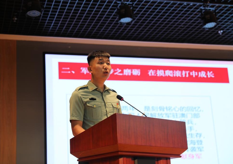“我曾是一名光荣的中国人民解放军驻澳门部队战士,经过刻苦训练,有幸在庆祝澳门回归祖国20周年大会上接受了习近平总书记的检阅。”张文龙同学无比自豪地讲道。