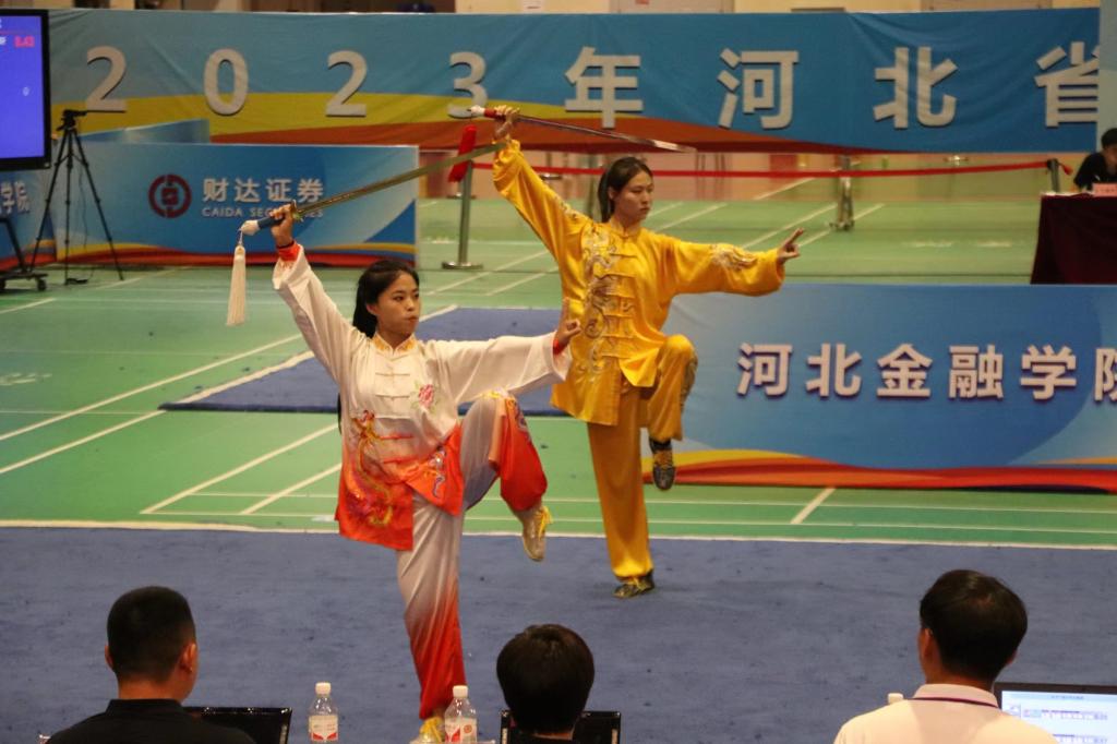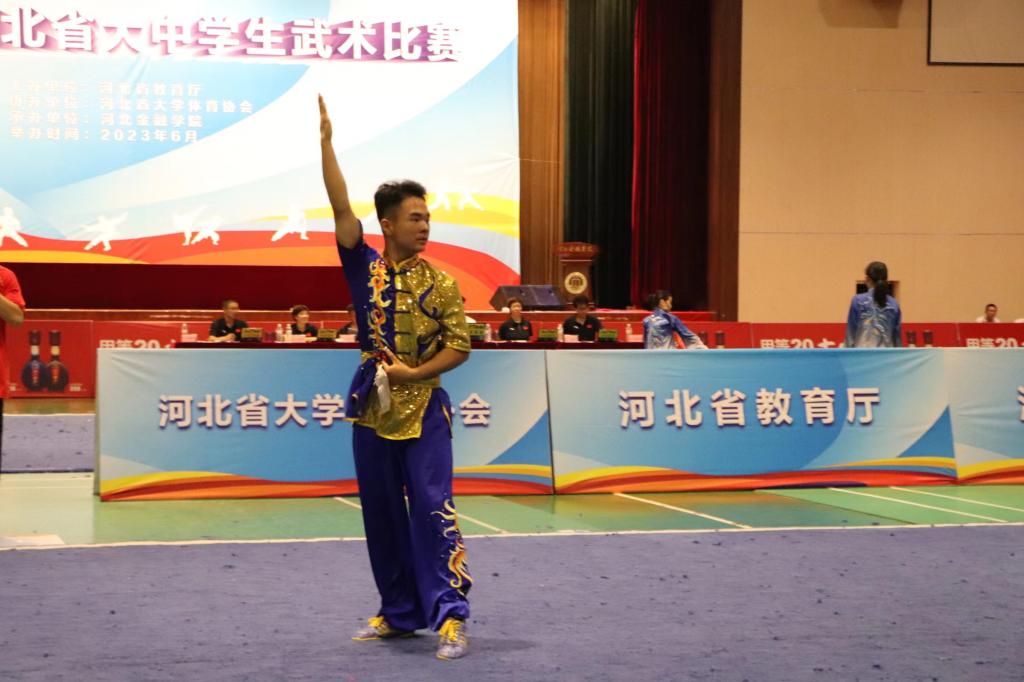2023年河北省大中学生武术比赛,于6月29日在保定金融学院举行,共有来自62个单位的661名运动员参赛。本次大赛共设甲、乙、丙、丁四个组别,我院参加了丁组14个项目的角逐,赛事精彩,成绩傲人。