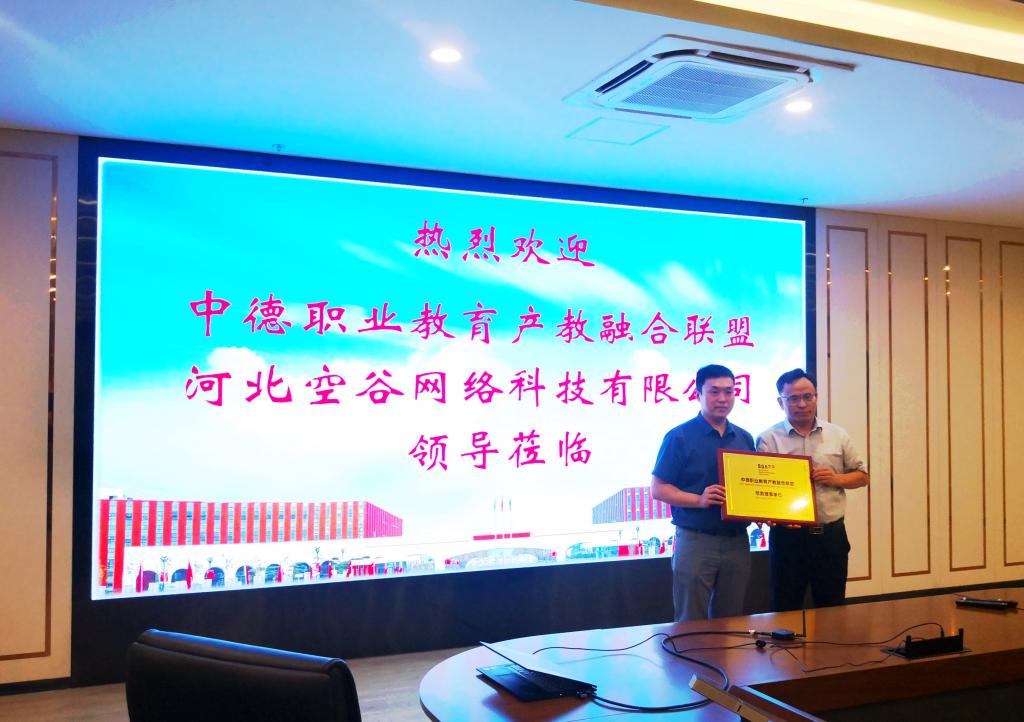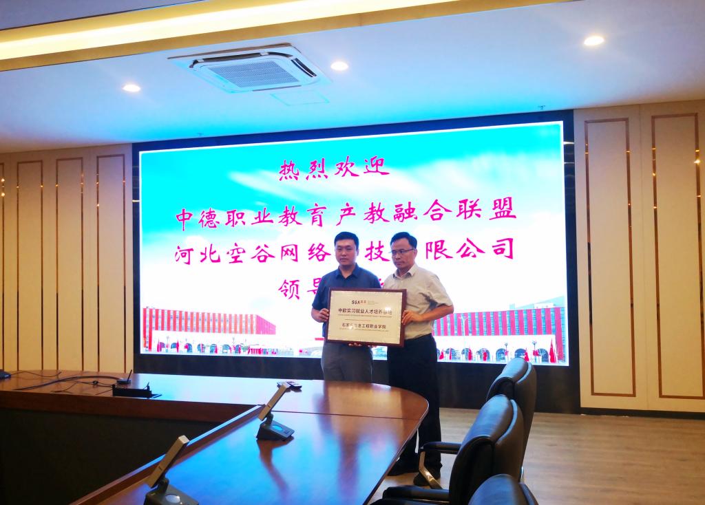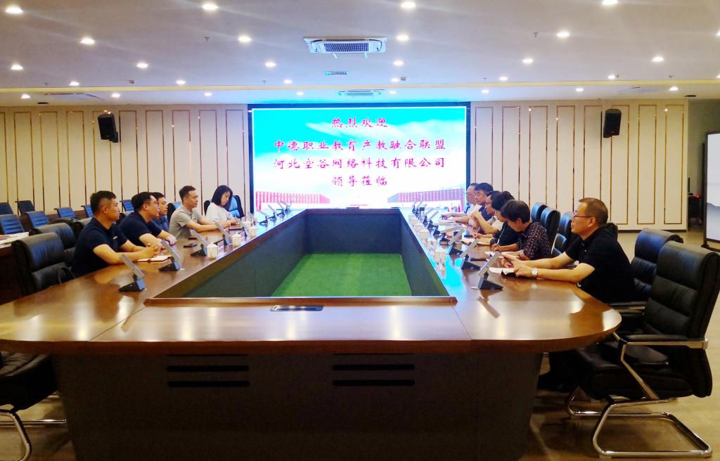 8月28日上午,中德职业教育产教融合联盟秘书长刘宇、河北空谷网络科技有限公司总经理熬志军一行到我院洽谈中德产教融合项目。院长许征程、副院长黄淑敏参加项目洽谈。