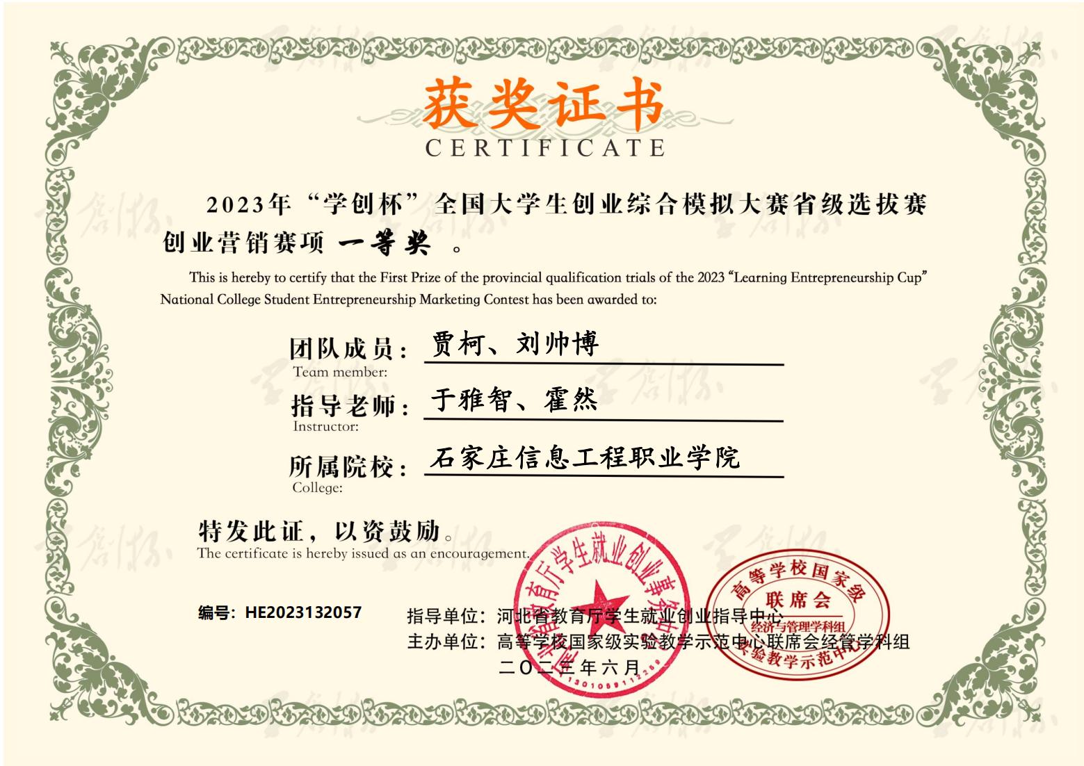近日,2023年“学创杯”全国大学生创业综合模拟大赛河北省选拔赛圆满落幕。大赛启动以来,我院积极响应,精心组织,经过校内选拔赛和省赛的激烈角逐,六支参赛队伍共获得一等奖3个,二等奖1个,三等奖2个。同时,获得一等奖的团队指导教师荣获“最佳指导教师”称号,获得二、三等奖的团队指导教师荣获“优秀指导教师”称号。我院荣获优秀组织奖。