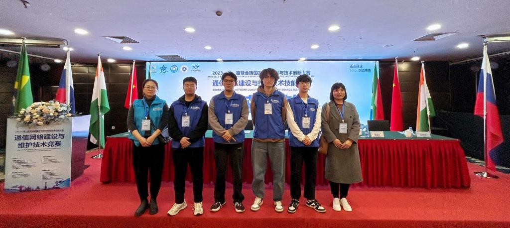 12月8日,2023一带一路暨金砖国家技能发展与技术创新大赛通信网络建设与维护技术赛项全国总决赛在河北机电职业技术学院落下帷幕。来自全国高职院校的82组共164名选手参加。网络与通信工程系学生张新宇、王雨瑞荣获高职组团体一等奖,学生刘瑞、赵康乐获高职组团体优秀奖,指导教师张晓博、李慧荣获“优秀指导教师”称号,我院荣获“最佳组织奖”。