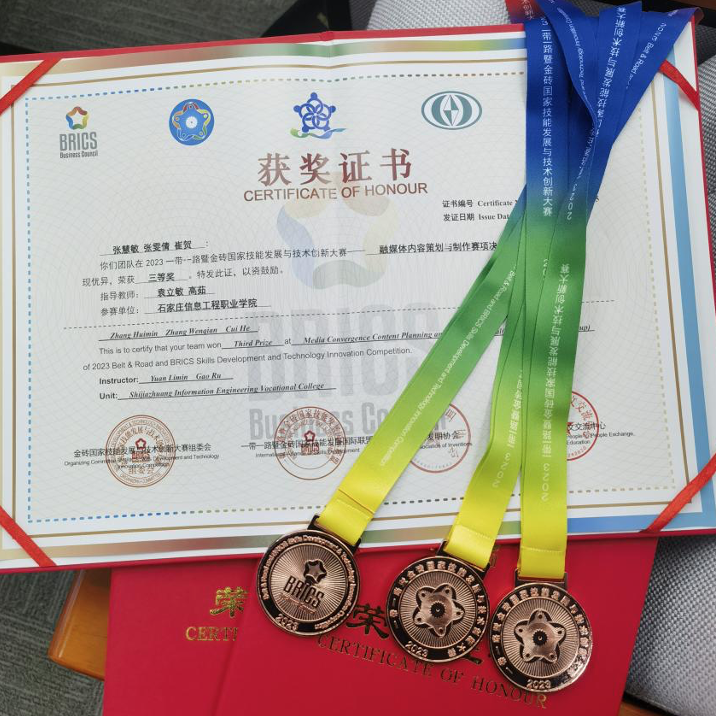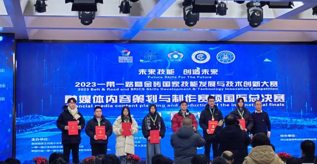 12月20日,2023一带一路暨金砖国家技能发展与技术创新大赛之融媒体内容策划与制作赛项国际总决赛在赤峰信息职业技术学校举行。来自各大院校的参赛队伍和赛项执委会的领导、专家和裁判等以“线上+线下”的形式,“云”聚赤峰,共同参加了开幕式。我院传媒艺术系崔贺、张雯倩、张慧敏三名同学组成的参赛团队凭借扎实的专业基础、沉着出色的表现顺利完成了比赛,荣获三等奖。