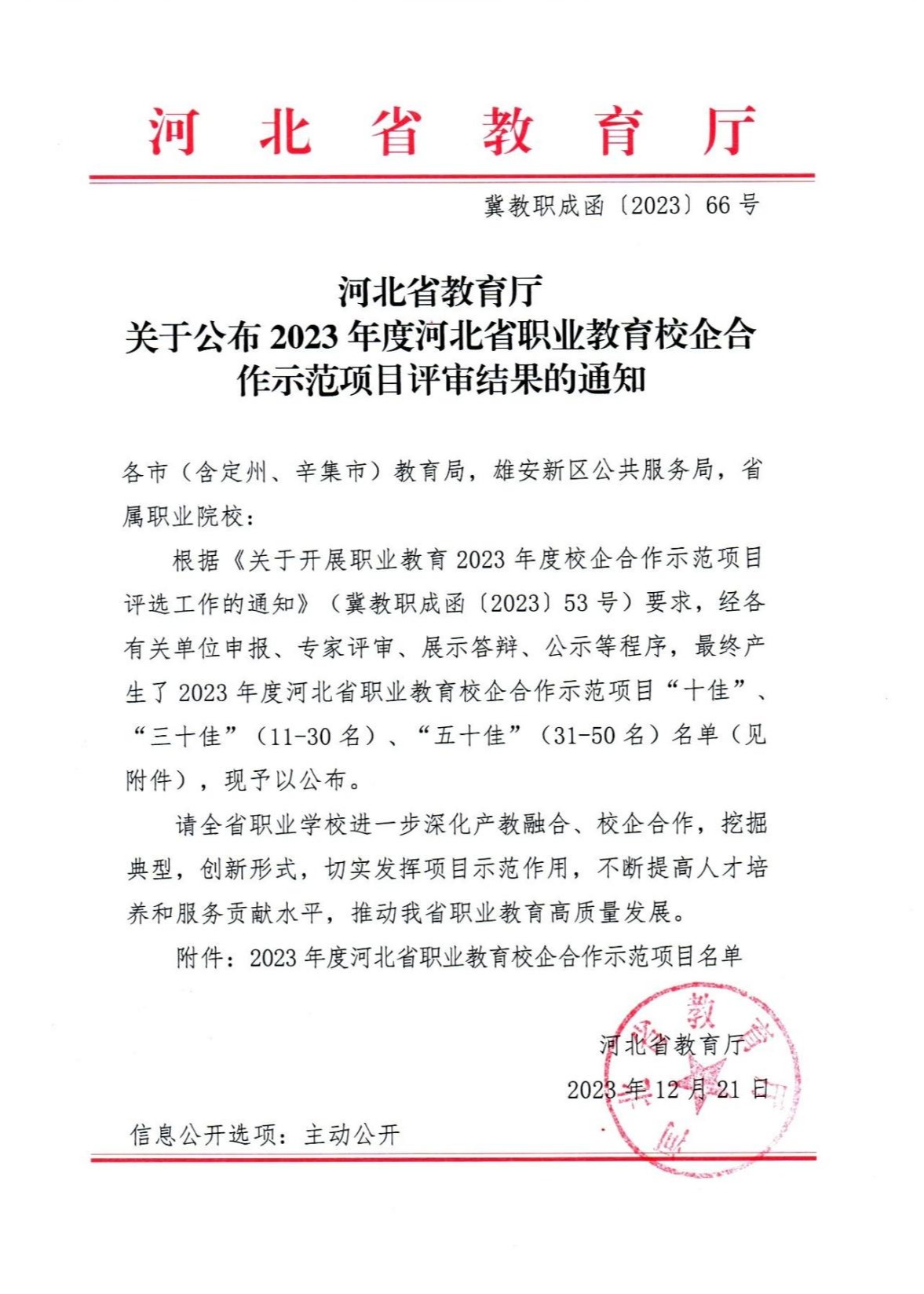 近日,河北省教育厅公布了2023年度河北省职业教育校企合作示范项目“十佳”“三十佳”“五十佳”名单。学院与北京天融信网络安全技术有限公司联合实施的“平台聚力·项目引领·成果共创·人才共育——打造特色化数字安全产教融合实践中心”项目,与河北鹰览自动化科技有限公司协同开展的“校企一体‘育人、研创、促产’构建无人机行业产教融合新模式”项目,从全省130个高职遴选项目中脱颖而出成功入选“三十佳”。