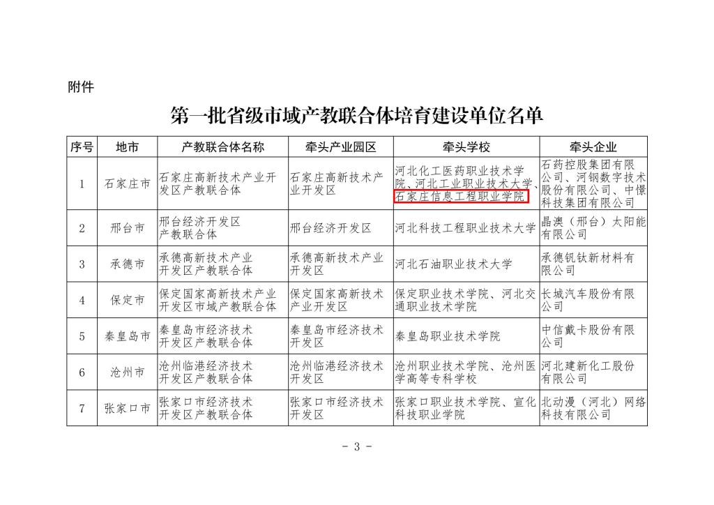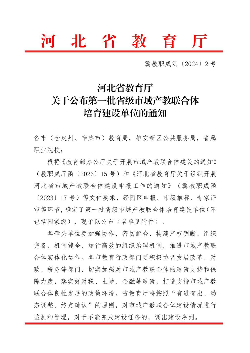 近日,我院牵头申报的石家庄高新技术产业开发区产教联合体成功入选河北省教育厅第一批省级市域产教联合体建设培育单位名单。