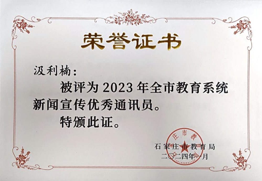 近日,市委教育工委、市教育局通报了2023年度全市教育系统新闻宣传情况和全市“大思政”建设工作优秀案例评选结果,我院被评为“2023年全市教育系统新闻宣传先进单位”,组宣部汲利楠被评为“2023年全市教育系统新闻宣传优秀通讯员”。3个案例荣获一等奖,1个案例荣获三等奖。