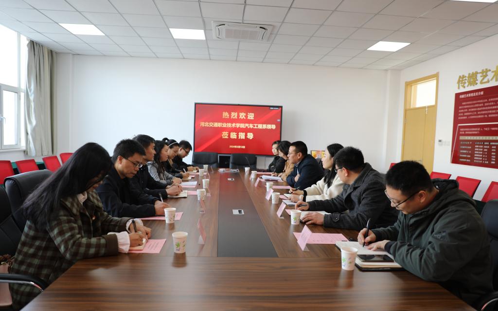 交流学习强党建,互学互鉴促提升。为深入学习贯彻习近平总书记关于教育的重要论述,提升高技能人才培养力度,加强党建联建成果运用,推动系部高质量内涵式发展,3月12日上午,传媒艺术系党建联建单位河北交通职业技术学院汽车工程系党总支书记左嘉琳,系主任王爱兵等一行6人到我院,就党建工作、大师工作室建设等方面进行交流学习。我院党委委员、组宣部部长范成宝出席座谈会并讲话,传媒艺术系班子成员及教师代表参加。