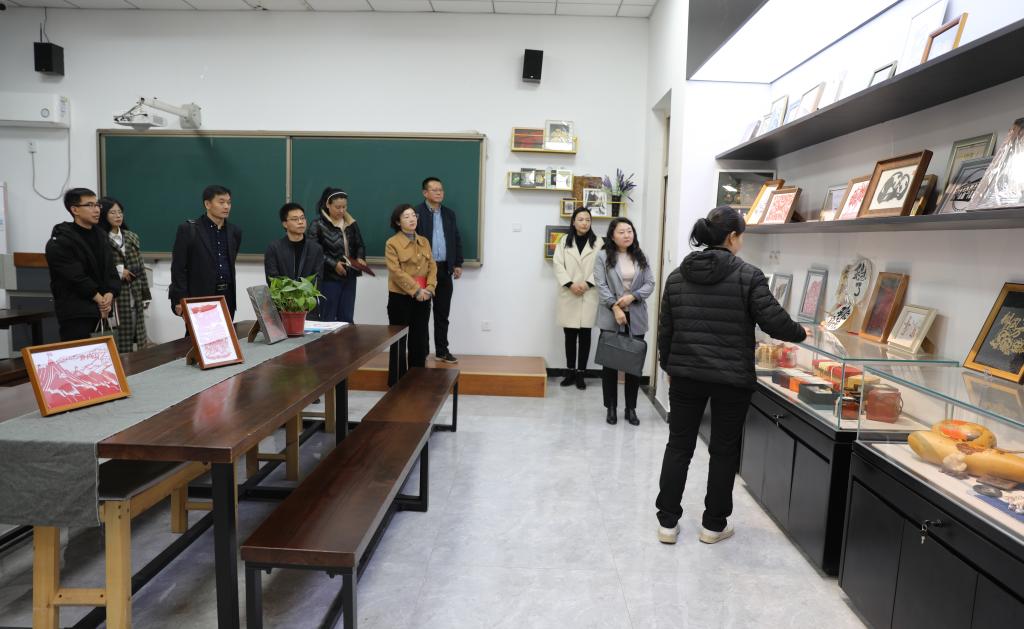 河北交通职业技术学院汽车工程系一行还参观了王丽云剪纸技术技能大师工作室、方士英石影雕技术技能大师工作室以及教师第一党支部“双带头人”工作室,并现场体验了金石传拓文创产品的制作。