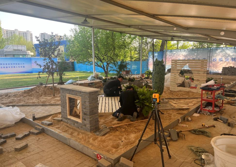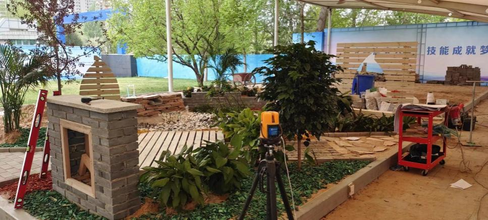 高职组“园林景观设计与施工”赛项是我国园林技术方面规格最高的赛事,不仅考验选手的设计能力,更考验了选手的动手能力。本次赛项为期两天,以团队方式进行,竞赛内容是5mx6m的小花园景观设计和施工,要求各参赛选手绘制场地设计方案和全套的施工图,并将设计方案按图施工,落实到施工竞赛工位。