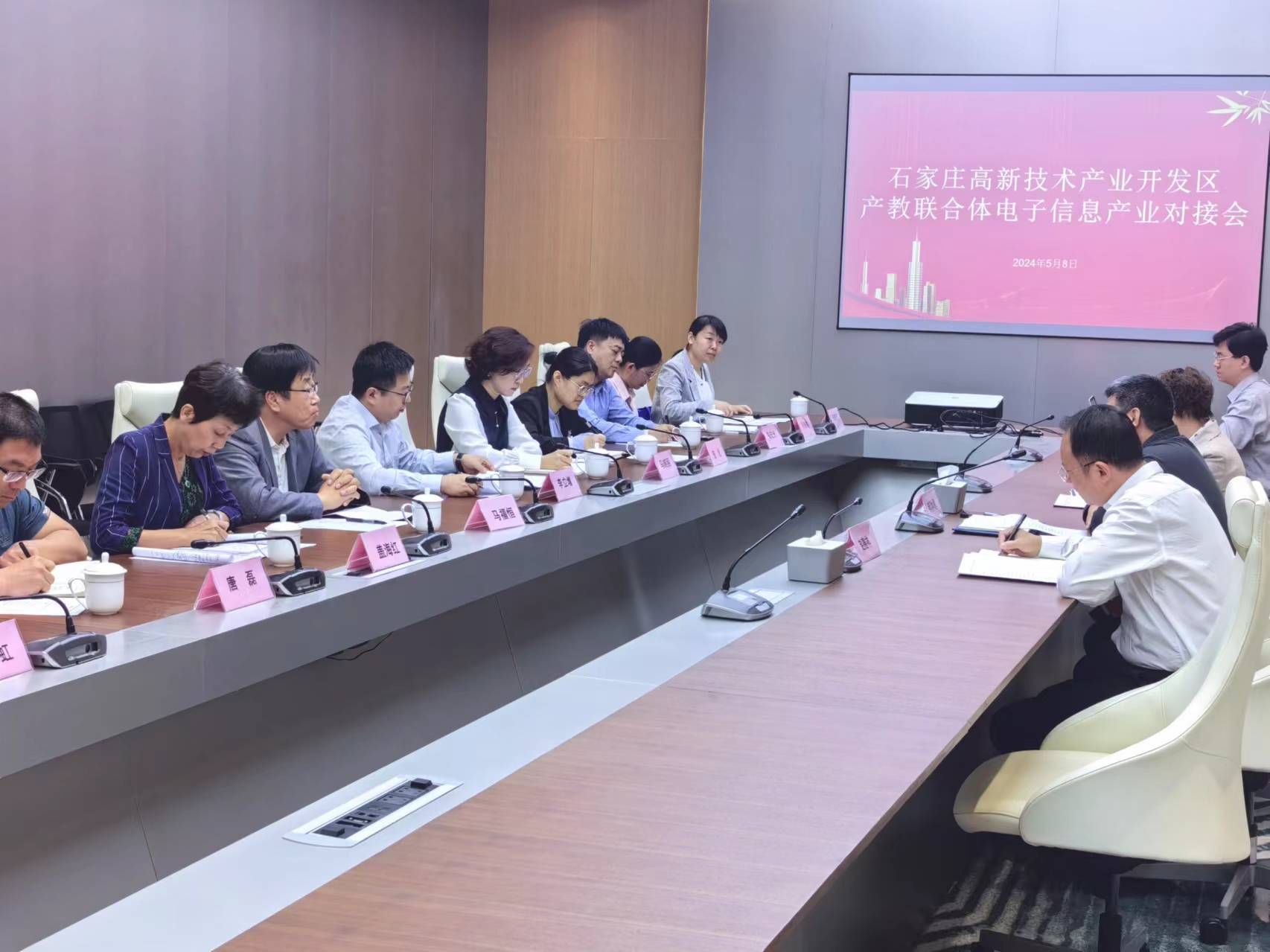 5月8日上午,高新区市域产教联合体电子信息产业对接会在高新区创新大厦举行。我院作为高新区市域产教联合体电子信息方向牵头院校,学院党委副书记马福恒带队参加此次对接会。高新区党工委委员、管委会副主任赵善祥,园区管理办(电子园)副主任郝洪恩及有关负责同志,河北化工医药职业技术学院、河北交通职业技术学院、石家庄铁路职业技术学院等院校领导和有关负责同志参加此次对接会。