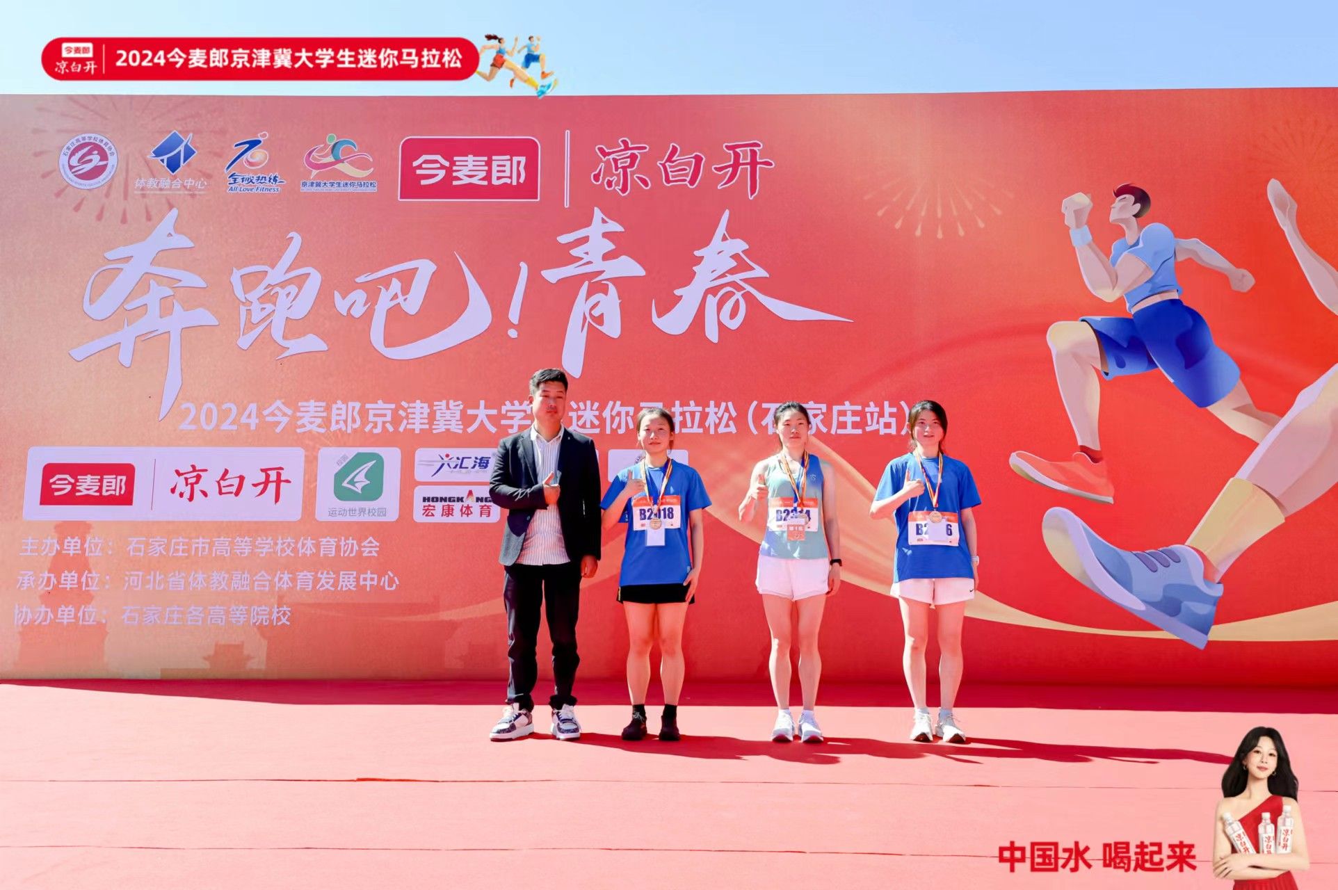 此次大赛由石家庄市高等学校体育协会主办,河北省体教融合体育发展中心承办,北京高校、天津高校、驻石高校协办。来自全石家庄市26个院校的6000余名选手参赛。在体育部教师马云书、吴兵辉、王雪岭的指导下,我院41位同学组成的bwin必赢代表队参赛,经过激烈比拼,我院学生23级经济贸易系电子商务6班钟瑾同学荣获女子组第二名,23级会计系大数据与会计1班李斯羽同学荣获女子组第三名。