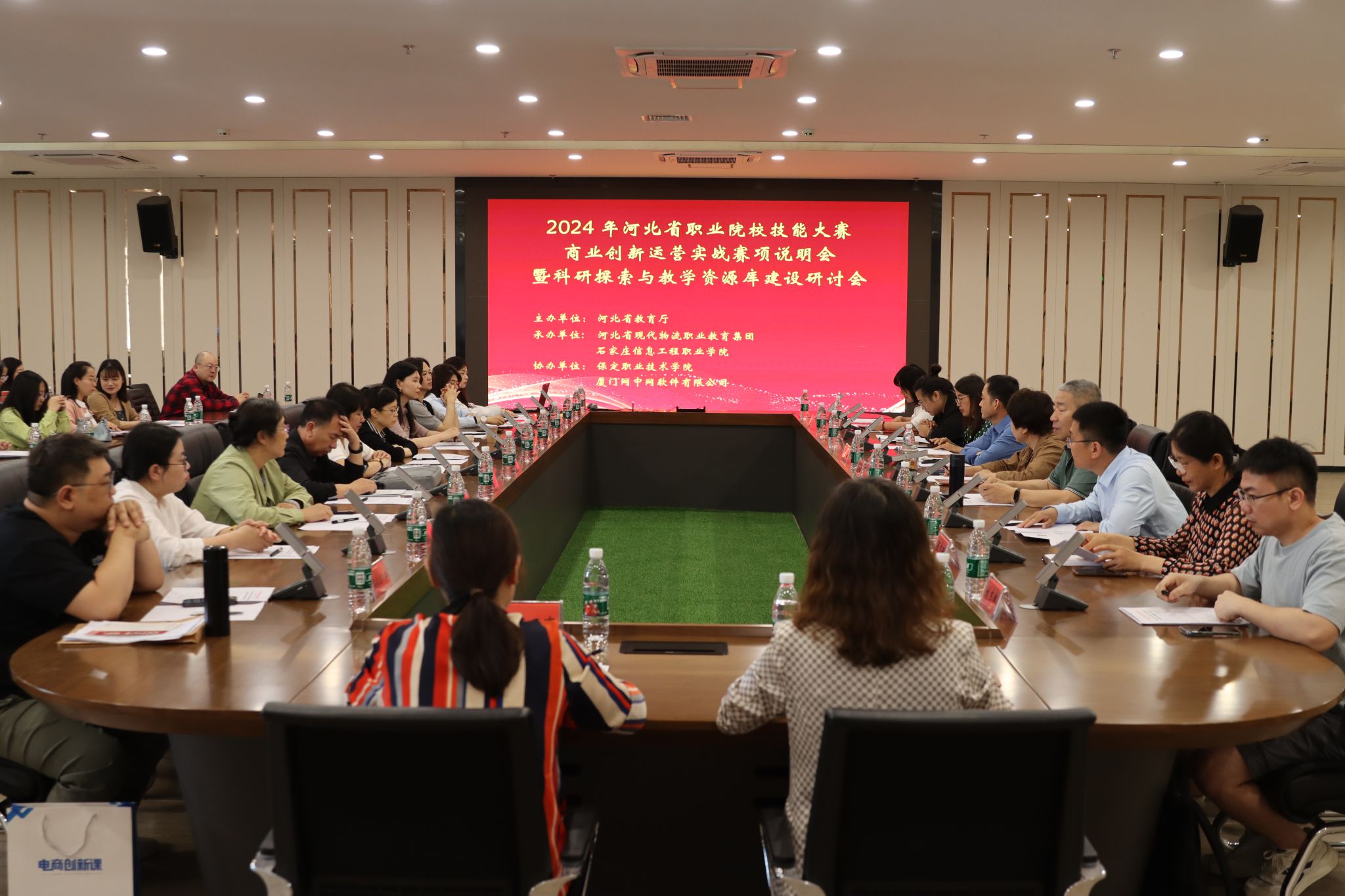 5月11日,2024年河北省职业院校技能大赛商业创新运营实战赛项说明会暨科研探索与教学资源库建设研讨会在我院明德楼二楼报告厅举办。学院副院长黄淑敏,河北省现代物流职教集团秘书长刘建清出席活动,河北政法职业学院、河北交通职业技术学院、保定职业技术学院、邯郸科技职业学院、衡水职业技术学院等职业院校教师参加本次会议。