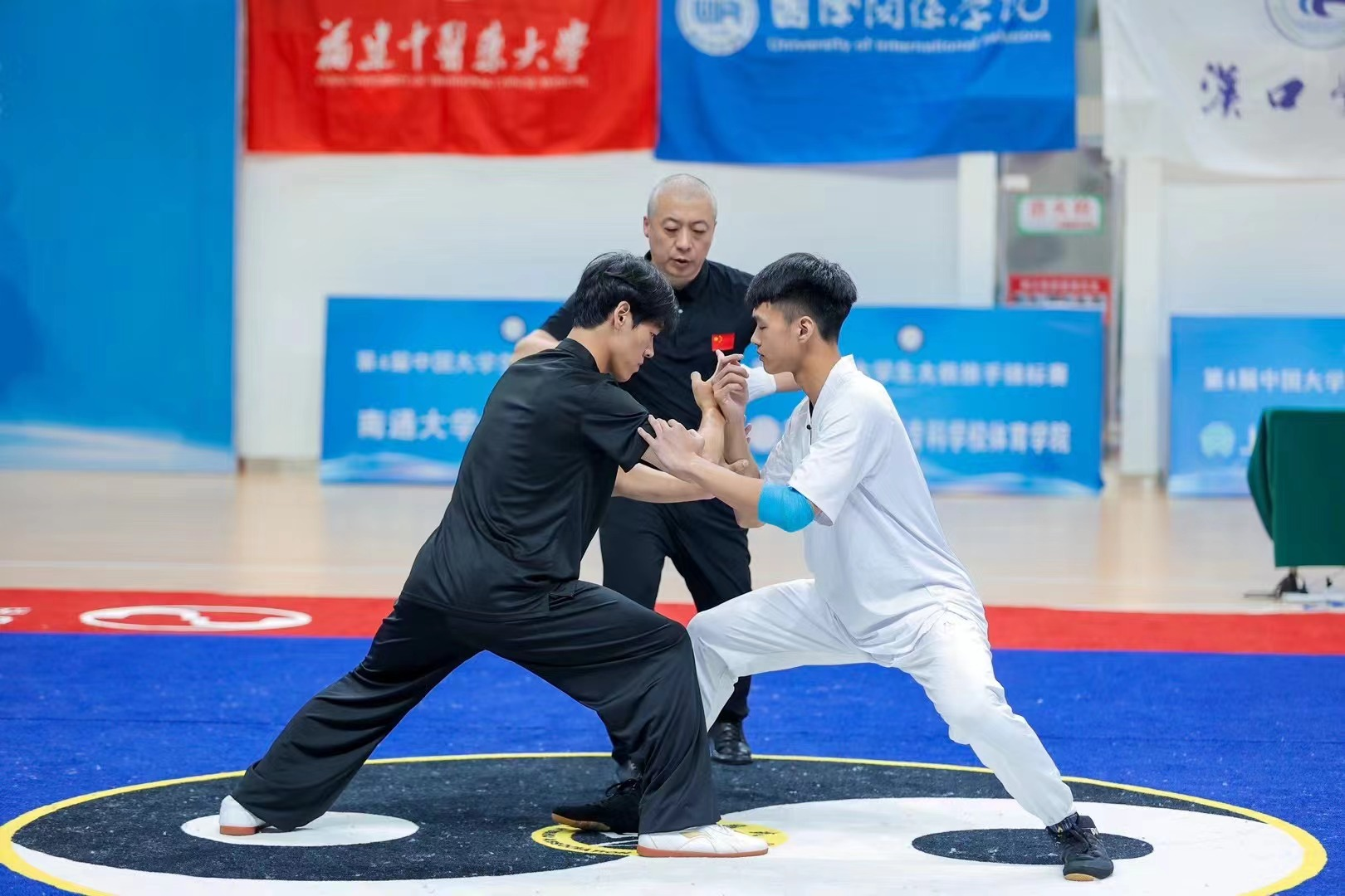 ▲管理系刘鑫洋、网络与通信工程系黄泰基获得男子乙组太极活步推手对练第二名