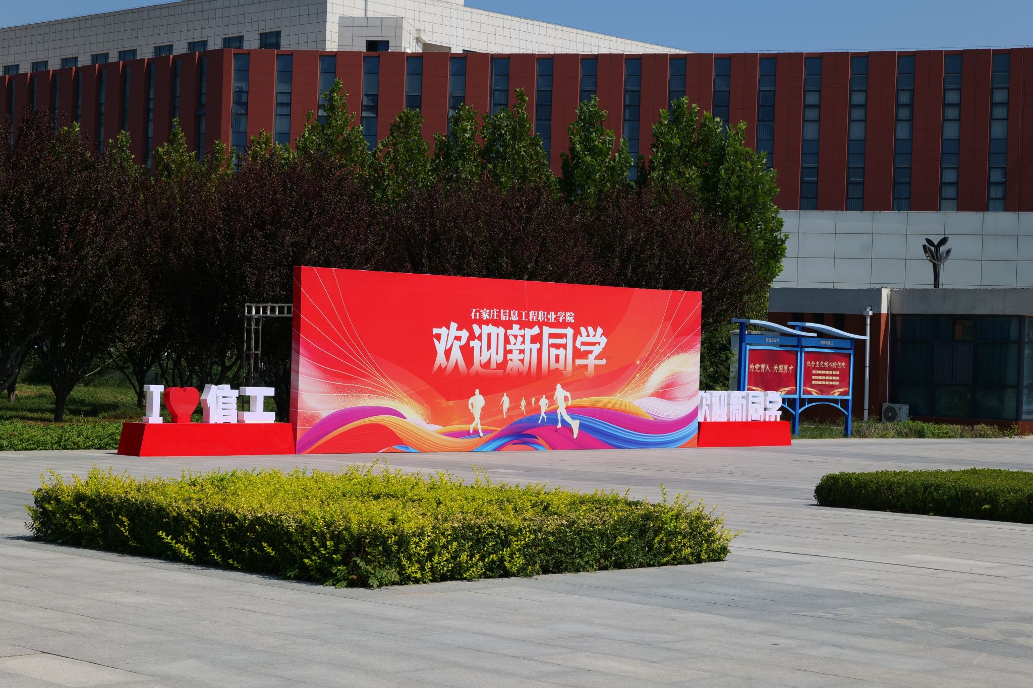 校园内,火红大气的拱门,随风飘展的彩旗,温暖深情的横幅,独特别致的打卡点,和蔼可亲的老师,热情友爱的学长学姐……人声鼎沸,川流不息,每一处细节都传递着学院对2024级新同学的翘首以盼和热忱欢迎。