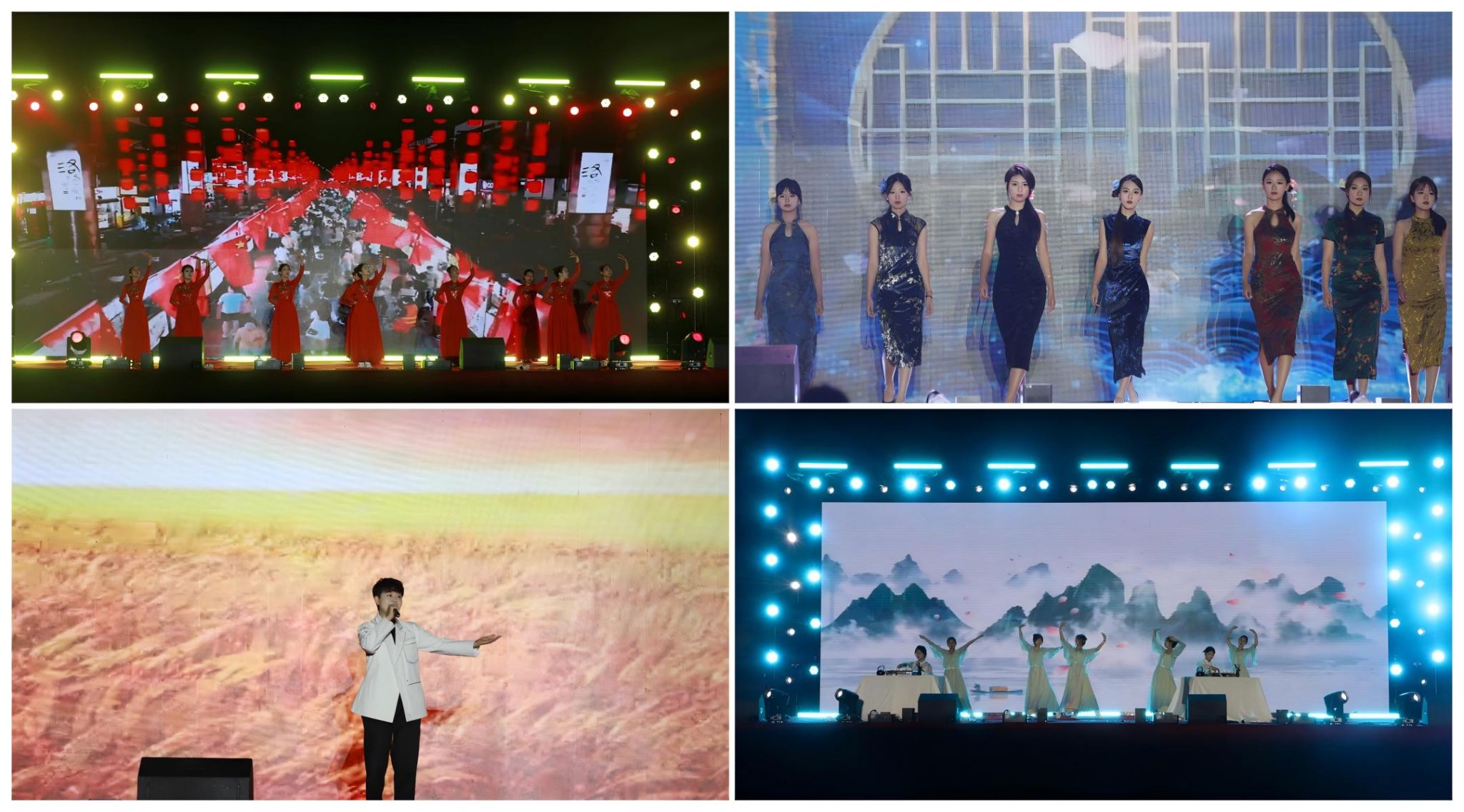 一系列精心准备的节目轮番上演,每一个环节都充满了创意与惊喜。农林牧医系带来的开场舞《如愿》以优美动人的旋律搭配轻盈曼妙的舞姿,瞬间点燃了现场气氛。经济贸易系选送的歌曲《光亮》,以激昂的歌声让人心潮澎湃。会计系同学通过活力四射的现代舞蹈《dancing shoot》展现了他们年轻而不失专业的风采。管理系的古典舞《花雨落》以其优雅的动作、柔美的姿态赢得了满堂喝彩。此外,《灯火里的中国》《new boy》《天路》等一系列充满正能量的作品依次呈现,充分展示了学生们积极向上的人生态度及深厚的艺术功底。由农林牧医系特别策划的传统技艺展示——《变脸》更是将整场晚会推向高潮,那变幻莫测的脸谱变换技巧令人叹为观止,引来观众阵阵惊呼和掌声。经济贸易系带来的说唱作品《trouble marker》以其独特的风格吸引了大家的目光。管理系用一首深情款款的《成都》带领所有人走进了一段关于成长的故事。会计系以一首气势磅礴的朗诵——《盛世中国》为同学鼓足了干劲,用《从传统到现在》的T台走秀让同学们在民国和现代的时空中穿越。最后,市歌舞团的吴婷老师亲情助演,用三首高水准的歌曲演唱为本次晚会画上了圆满句号。