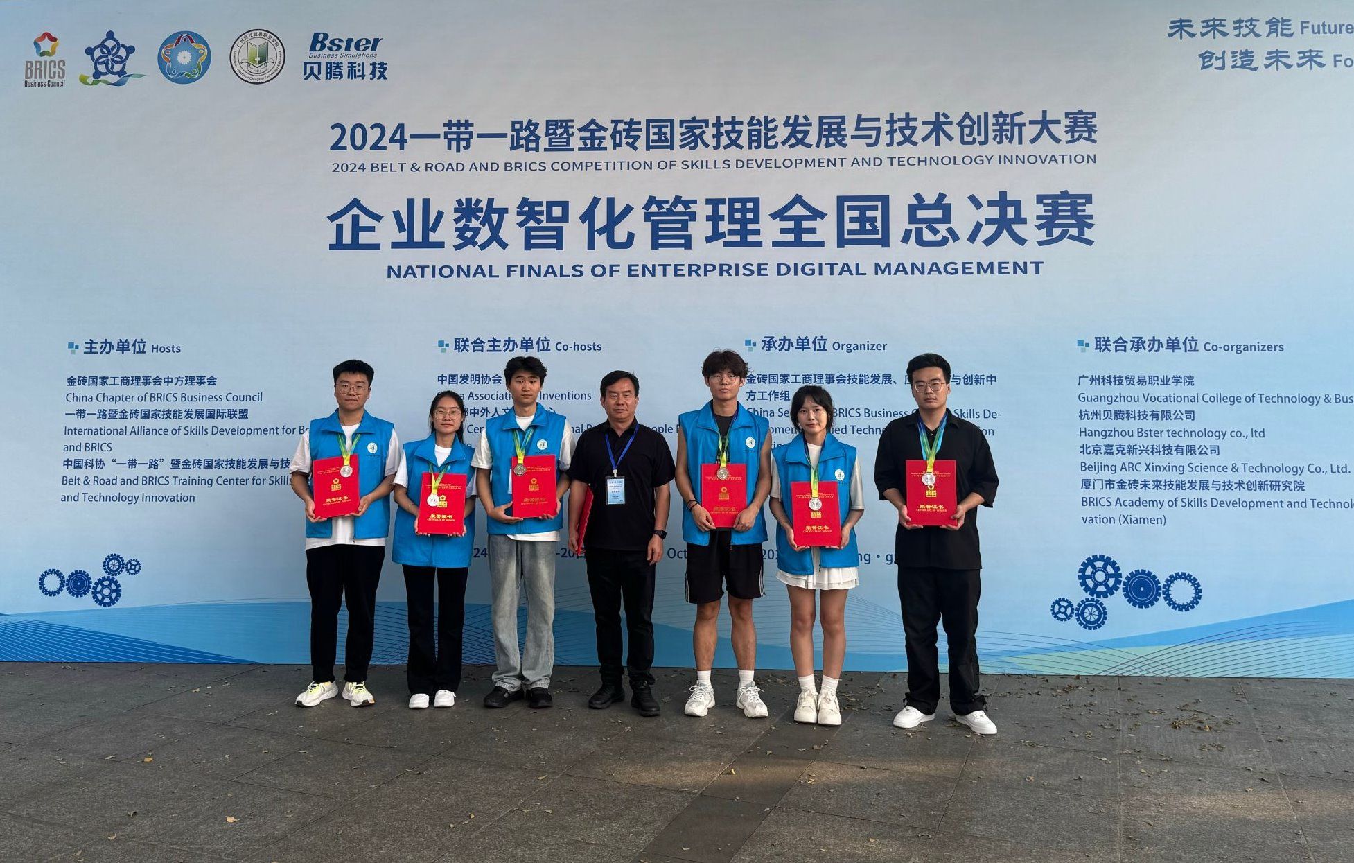 10月18日—20日,2024第八届“一带一路”暨金砖大赛之企业数智化管理赛项全国总决赛在广州科技贸易职业学院圆满落幕。经过激烈角逐,我院软件工程系学生贾柯、张旭昊、李春丽组成的“信工一队”和经济贸易系学生张立杨、沈枫楠、冯一丁组成的“信工二队”均荣获二等奖(银牌)。指导教师李潇、谷慧琳荣获“优秀指导教师”称号,学院荣获优秀组织奖。