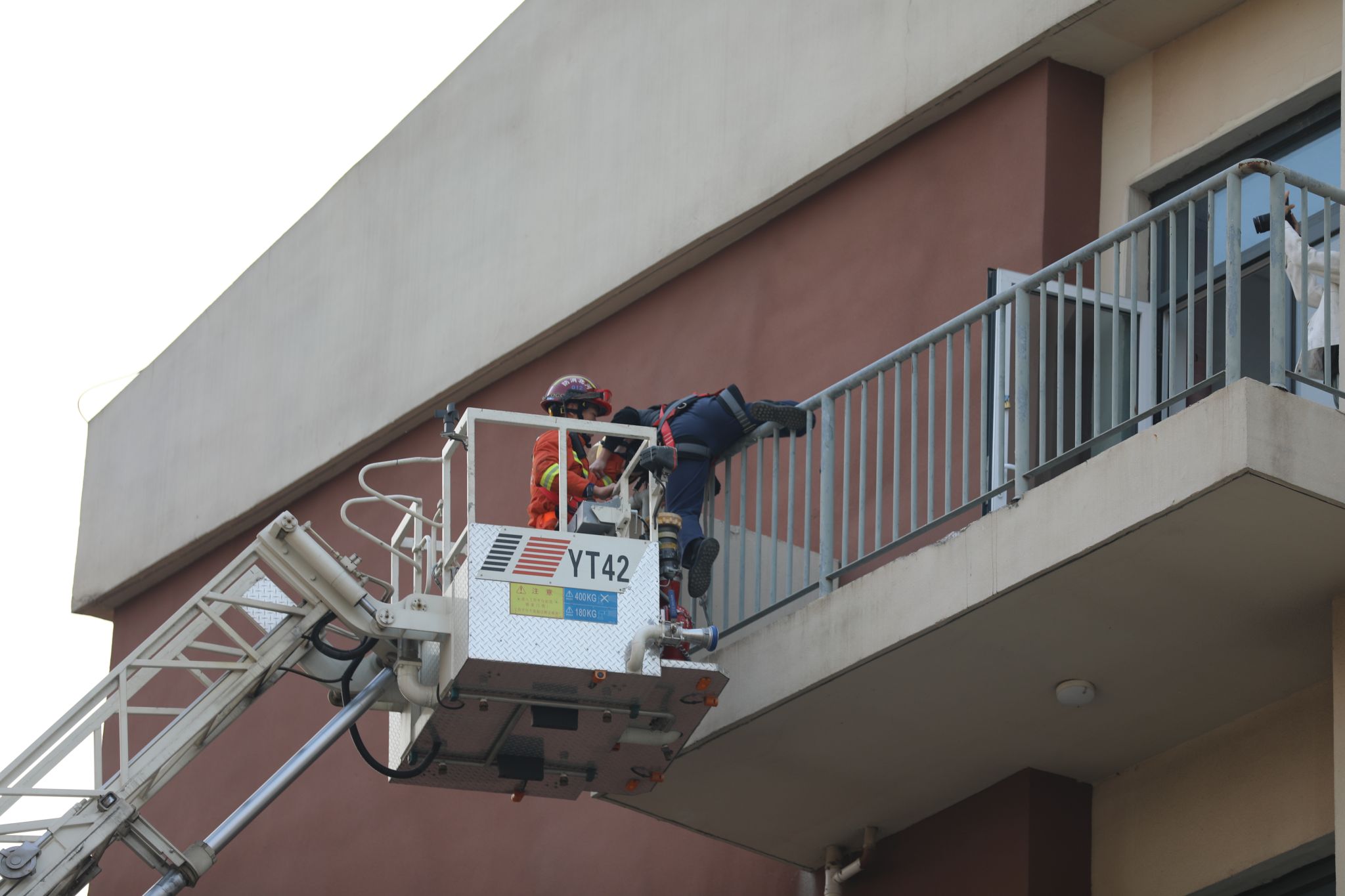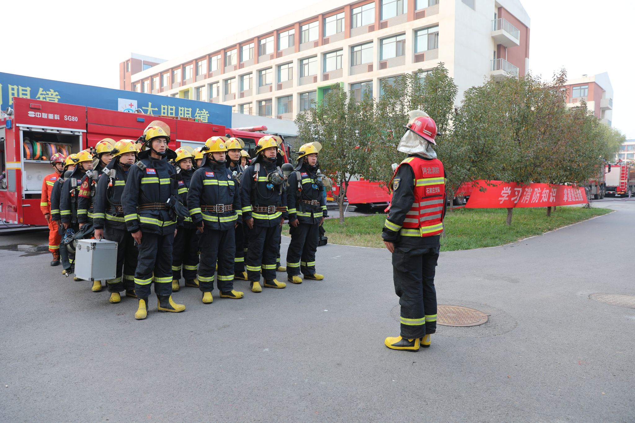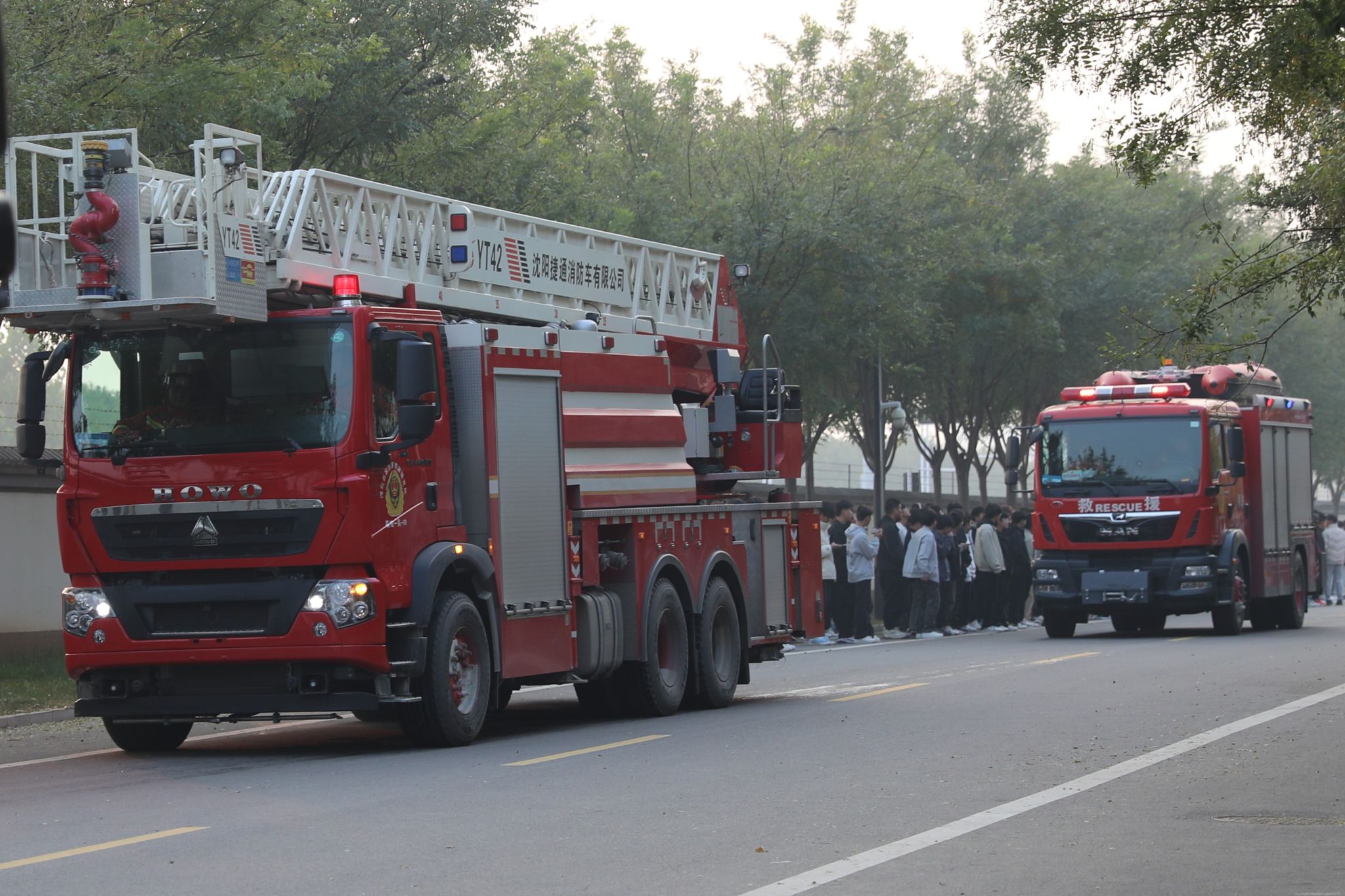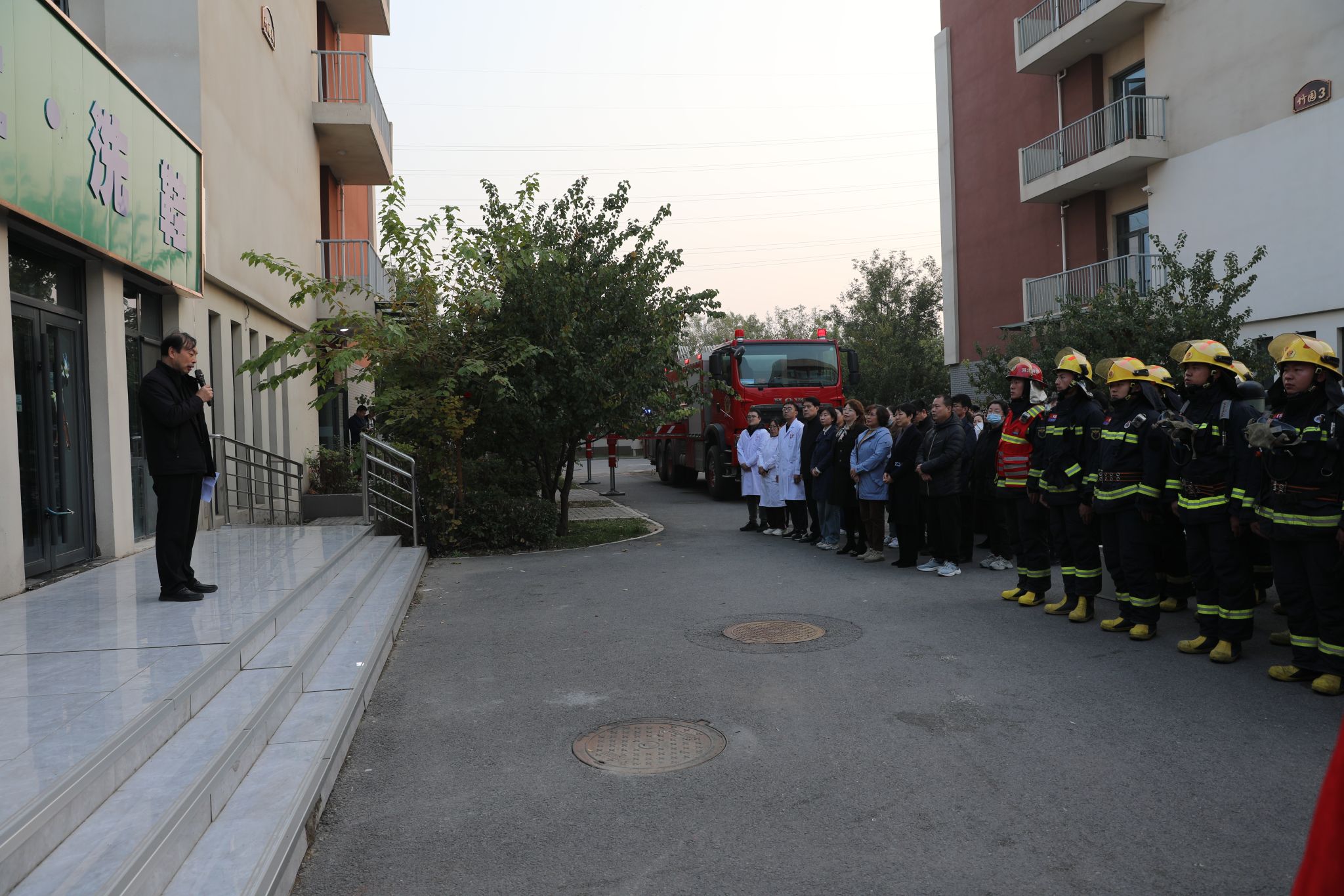 在第33个消防日来临之际,为进一步提高学院广大师生在突发火灾时的自防自救能力,11月7日,我院联合藁城区消防救援大队,开展消防灭火救援及疏散逃生实战演练活动。为使演练达到实际效果,学院专门召开协调会,制定周密演练方案,确保疏散演练组织严密、执行到位。副院长刘占红亲临活动现场,并担任总指挥,各系负责人及一千余名师生参加了此次演练活动。
