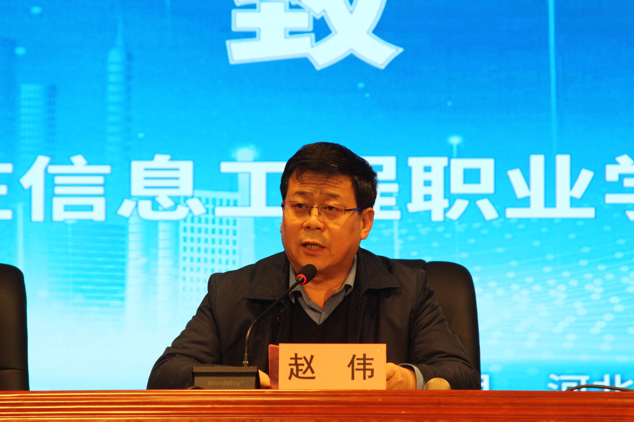 开赛式上,赵伟对各兄弟院校师生的到来表示热烈欢迎,对各位裁判和专家的辛勤工作表示诚挚的感谢,同时感谢河北省新一代信息技术职教集团的大力指导。赵伟表示,在大赛组委会统一指导下,学院将以争创一流的精神,以最周密的部署和最精心的准备,全力做好赛事组织和服务保障工作。