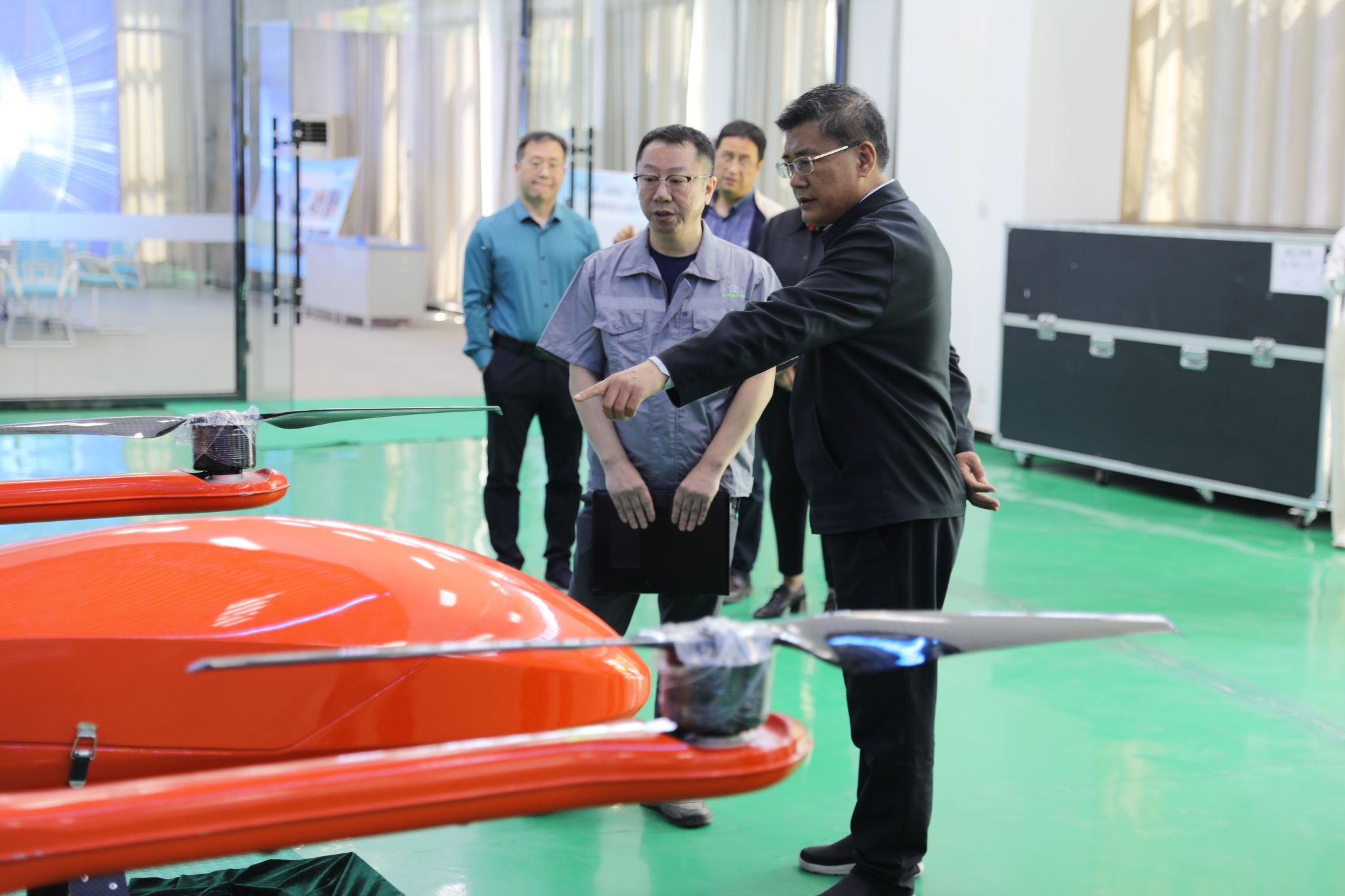 马誉辉一行参观了学院工程实训中心、无人机实训中心,就空天信息发展、应用场景、制约因素等进行调研。