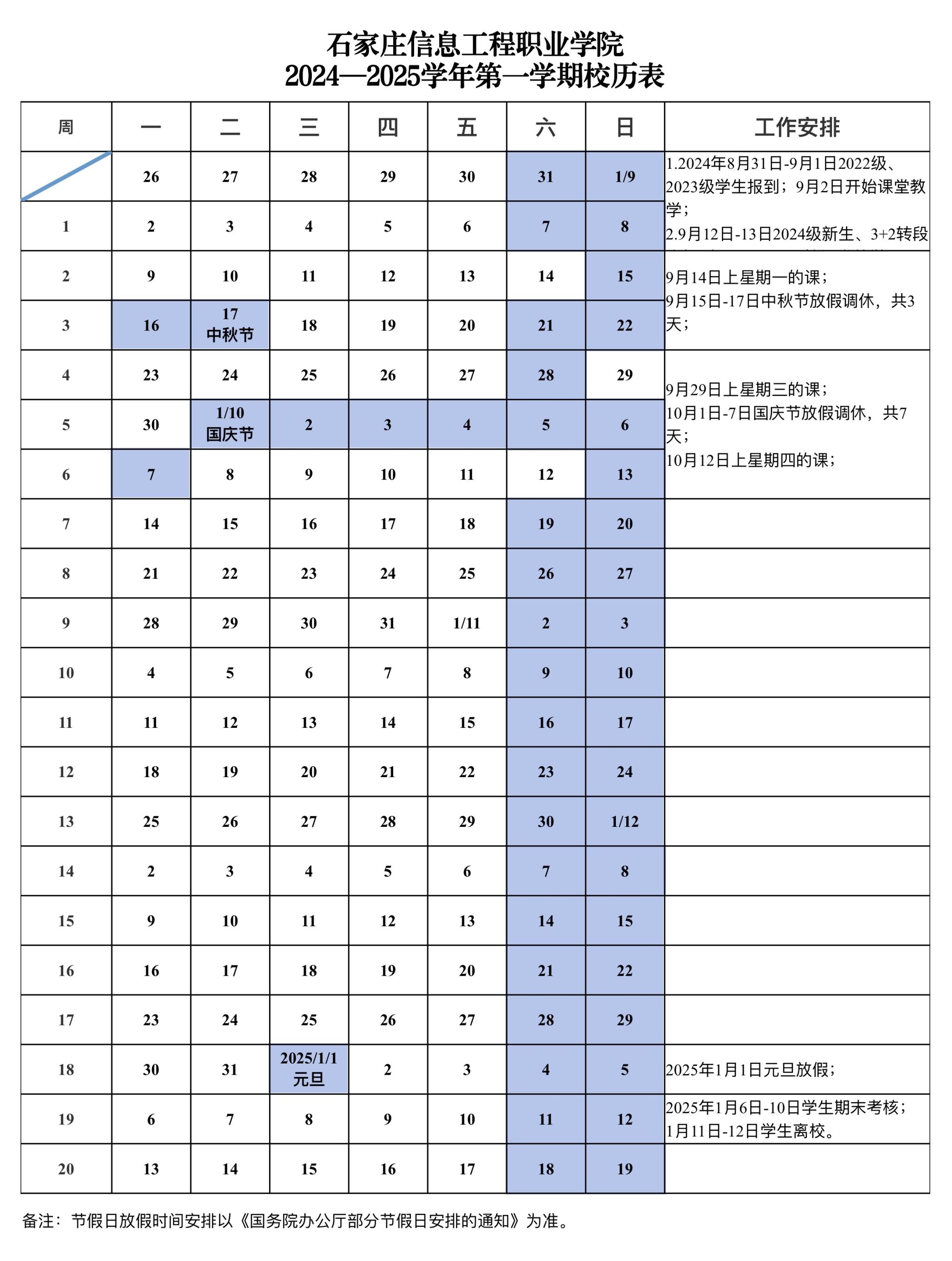 关于发布2024—2025学年第一学期校历的通知
