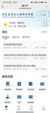 微门户将微信公众号和智慧校园门户平台进行融合集成,让师生可以方便地在移动端使用信息应用,完成相关事项查询、办理,微门户集成了移动OA、移动教务、图书信息、一卡通信息、资产信息等内容,提供丰富的应用和较强的扩展能力,可为师生提供各类信息化服务,提升学习和工作效率。