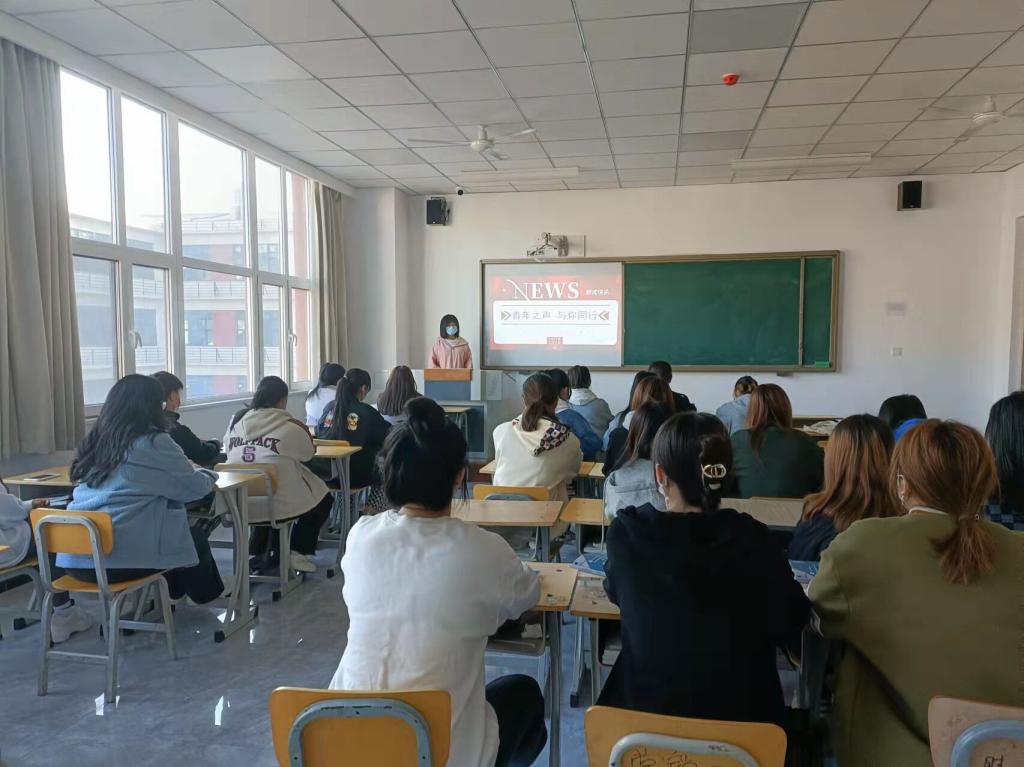 “青年之声,与你同行。……”3月7日早上,随着熟悉的音乐响起,经济贸易系“青年之声”宣讲团《每周新闻》节目在本学期正式开播。节目以“传播时代声音,传递初心力量”为宗旨,以班级为单位,每周一期,汇集一周内国内外新闻、学院新闻以及经济贸易系工作动态,设有要闻报道、专题新闻、服务性信息等版块。