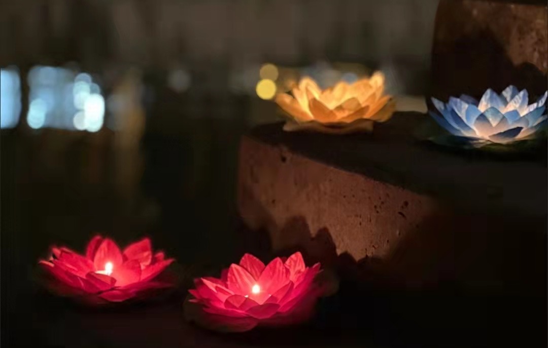 4月4日晚,同学们自己动手制作花灯,以灯寄情,以湖载恩,在知海湖放花灯悼念缅怀先烈。