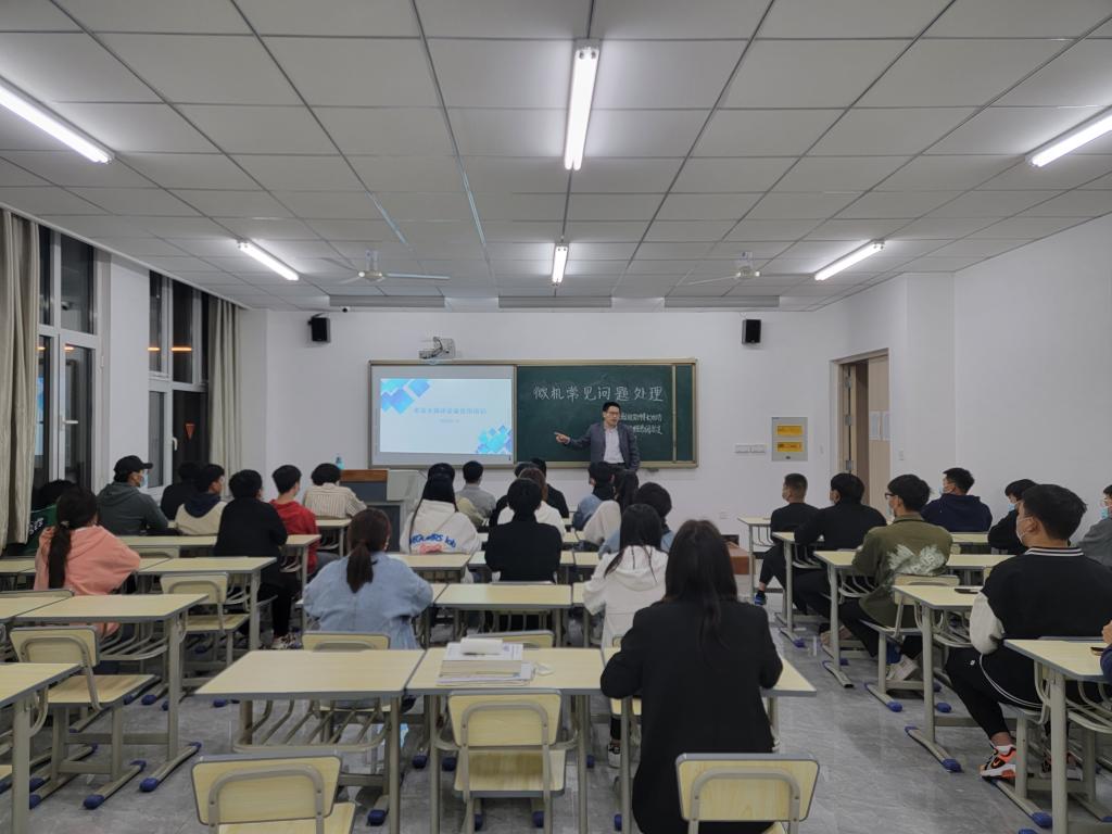 考虑到疫情防控期间,多媒体教学过程中可能会遇到的计算机无法正常启动、音响无声等具体问题进行有针对性的培训。培训结束后,雷霆小队成员为各个教室排查电脑故障、安装网课软件,将理论知识与实践操作相结合。通过亲自动手处理问题获得了新的体验,既解决了同学们对计算机问题的困惑,又达到了网课期间计算机设备维护的效果。