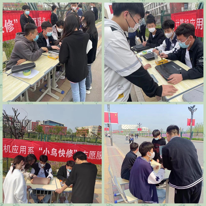 本着为校园师生办实事的宗旨,4月17日下午,计算机应用系“小鸟快修”社团在桃园生活区开展“展青年风采 显互助之风”电脑公益维修志愿服务活动。