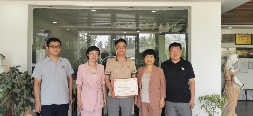 为增进与校友之间的联系,进一步推进就业创业工作,发挥校友在人才培养中的作用,7月1日,传媒艺术系书记庞超、副主任袁立敏等一行10余人赴新乐市走访我系优秀校友、村党支部书记曹路遥,参观其创业企业——河北伊甸园园林雕塑工程有限公司,并联合开展“庆祝建党101周年”重温入党誓词活动。