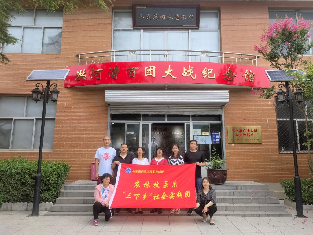 群山环绕间,树木郁郁葱葱,宅院古朴沧桑,农林牧医系“三下乡”社会实践团一行人来到了河北省爱国主义教育基地——井陉县辛庄乡洪河漕村,著名的百团大战曾在这里进行。实践团的师生们在参观中追忆了百团大战中革命先烈英勇杀敌的革命事迹。