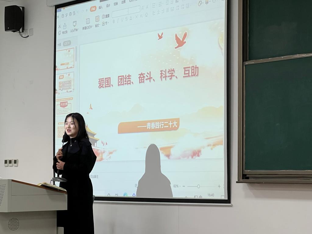 此次主题班会展示活动历时4个小时,围绕“爱国、团结、奋斗、科学、互助”五个关键词,结合新学期学生管理工作要求,学习践行党的二十大精神,引导学生奋斗青春、奋发有为、立志成才,做新时代的好青年,以良好的精神面貌迎接新学期的开始。辅导员与学生积极互动,以良好的精神状态,不同的表达方式认真诠释班会主题。或幽默风趣,或娓娓道来,或妙语连珠,阵阵掌声一次次把主题班会带向高潮。