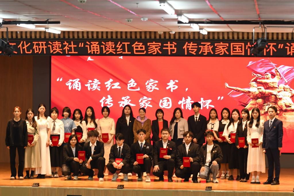九组参赛选手依次登台展示,配合着精心准备的背景音,声情并茂、极具感染力地诵读了《杨开慧写给挚爱润之的信》《夏明翰写给郑家钧的家书》《刘世忠写给母亲的家书》《赵云霄写给女儿的家书》等。一封封家书,道不尽期盼;一张张纸笺,蕴藏着坚定信念;一笔一划,诉不尽衷肠。家书的深情朗诵把会场同学带入到艰苦斗争的革命岁月,家书背后的感人故事感染了每一位社员,获得评委和观众阵阵掌声。