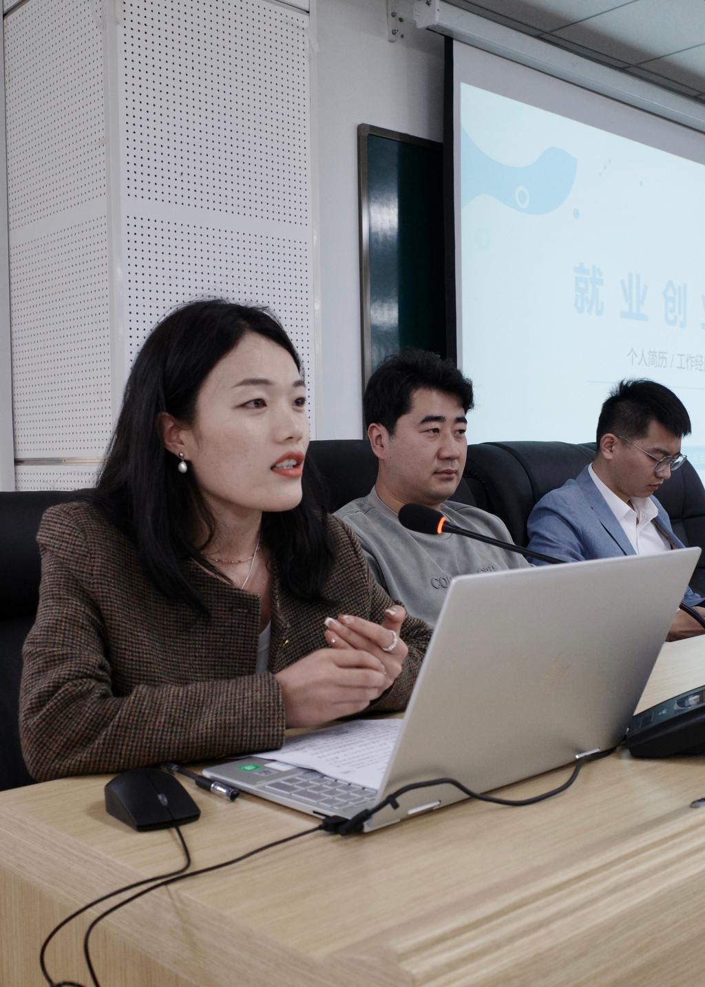 返校的四位校友都是电子商务专业毕业生的优秀代表,他们分享了职业方向选择和就业创业心路历程。2014届毕业生石家庄舞陆柒服饰有限公司总经理李国辰向大家介绍了经营舞蹈服装网店的乐趣与辛酸。2018届毕业生河北伴宠宠物用品有限公司总经理张帅兴介绍了做宠物用品店铺时的果敢与坚韧。2019届毕业生且慢中高端女装店店主戈福苗向同学们分享了在创业中经历的一次次挑战,无论再多的困扰,她始终对热爱的女装行业饱含激情。2021届毕业生郭世鹏在校期间参军入伍,正是这份宝贵的经历,成就了他的多彩人生。毕业后通过自己的努力考入河北省深州市人民检察院经济犯罪部。