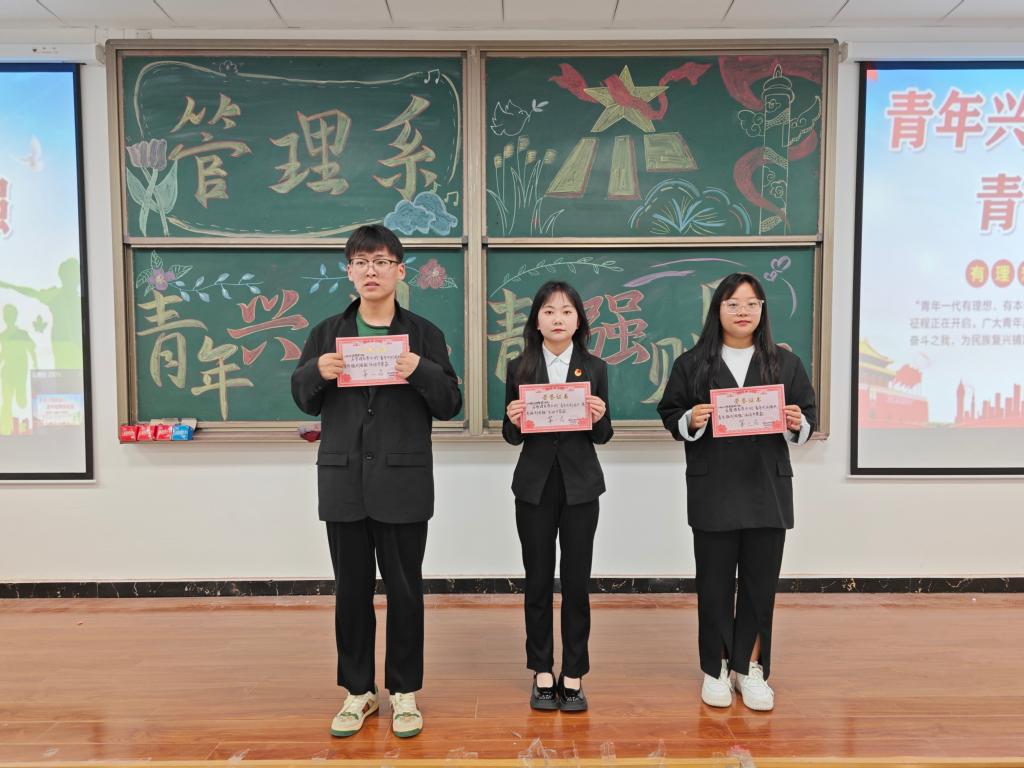活动中,选手们以饱满的热情、良好的精神面貌,紧紧围绕“青年兴则国兴,青年强则国强”的主题,重温党的光辉历程,歌颂党的伟大成就,围绕不忘初心、砥砺前行等内容,或慷慨激昂,或深情诉说,向观众们传递青年爱国精神。经过激烈的角逐,22级行政管理二班、22级旅游管理四班、22级人力资源管理三班分别获得本次比赛的一、二、三等奖。