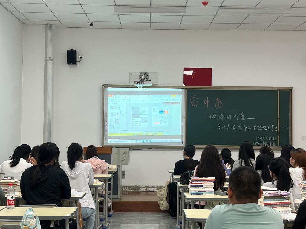 5月31日晚,会计系举办“榜样的力量”优秀毕业生经验分享会。邀请会计系2020级优秀毕业生田艳和陈志利,他们在今年的专升本考试中,分别考取了河北省会计专业第四名和第五名的优秀成绩。会上他们对自身学习、接本及就业的成功经验进行分享。会计系党总支书记田静在主持分享会时嘱咐同学们,要以榜样为标杆,做好学习规划,树立好目标,坚定学习信心,全力以赴备考。2021级、2022级全体同学在各班教室参加。