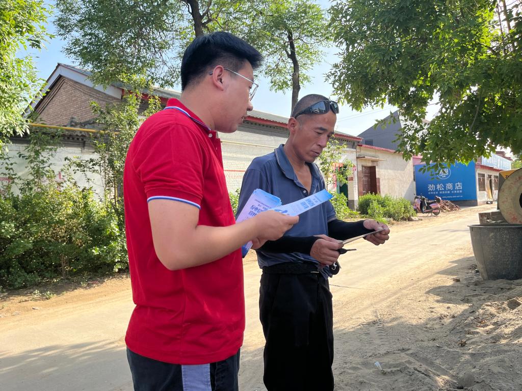 在志愿活动中彰显青年力量。引导青年将理论和实践相结合,积极参与“大思政”教育课程,是让其长才干、做贡献的重要举措。实践团在大道王庄村开展了一系列社会实践活动。在村主任王志详细的介绍下,实践团了解了乡村基本情况和近几年发展状况,并在村委会开展整理资料、优化电脑系统等志愿服务工作。随后,实践团顶着烈日骄阳,挨家挨户发放反诈宣传册,帮助村民下载安装“国家反诈中心”APP,并开启电话拦截和短信拦截功能,提高反诈防骗意识。