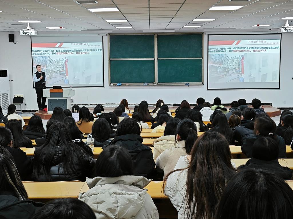 为进一步增强同学们的消防安全意识,提升消防应急能力,提高自我保护水平,12月4日下午,会计系在知新2-4号楼连廊110教室开展“人人讲安全 个个会应急”为主题的消防安全知识讲座。
