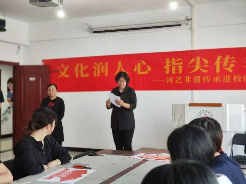 文化润人心,指尖传非遗。5月8日下午,受河北艺术职业学院学生处的邀请,传媒艺术系王丽云剪纸技术技能大师工作室团队为该院学前教育专业师生带来一场精彩的剪纸PK赛。河北艺术职业学院学生处副处长孙艳丽出席本次活动。