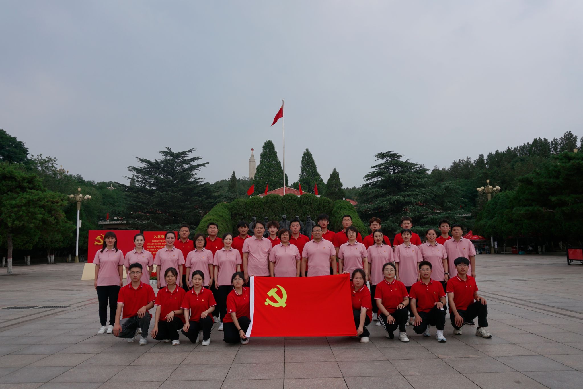 铭记初心,坚定信念。“我志愿加入中国共产党,拥护党的纲领,履行党员义务......”在平山县西柏坡精神广场上的巨幅党旗前,网络与通信工程系“红色聚力”社会实践小分队的党员庄严宣誓,他们坚定的目光,高高举起的右拳,铿锵有力的誓词,无不体现出对党的忠诚和承诺。