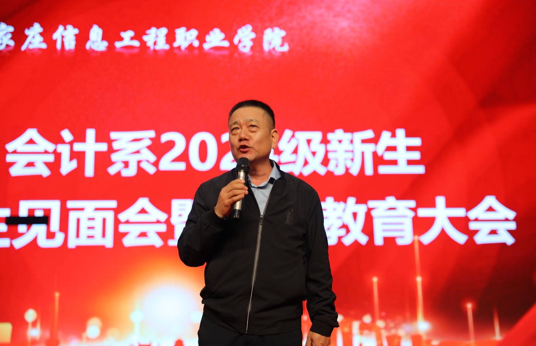 会议在温馨而热烈的氛围中拉开序幕,系部领导与新生们进行了亲切见面。会计系主任李素其发表致辞,他以满腔热忱欢迎新生的到来,并简要讲述了系部的发展历程、雄厚的师资力量及优异的教学成果。李素其深情寄语,大学生活是人生的新起点,希望同学们珍惜韶华,勤勉不辍,全面提升个人素养与专业实力。