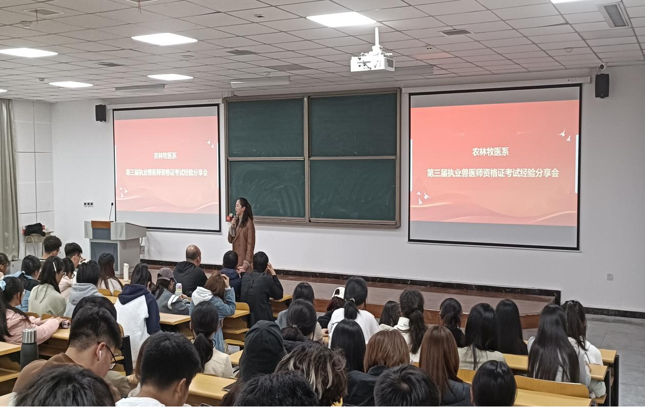 10月31日晚,农林牧医系在知新2号楼310教室举办“第三届执业兽医师资格证考试经验分享会”。农林牧医系党总支书记宋建蓬、副书记王丽萍莅临现场。