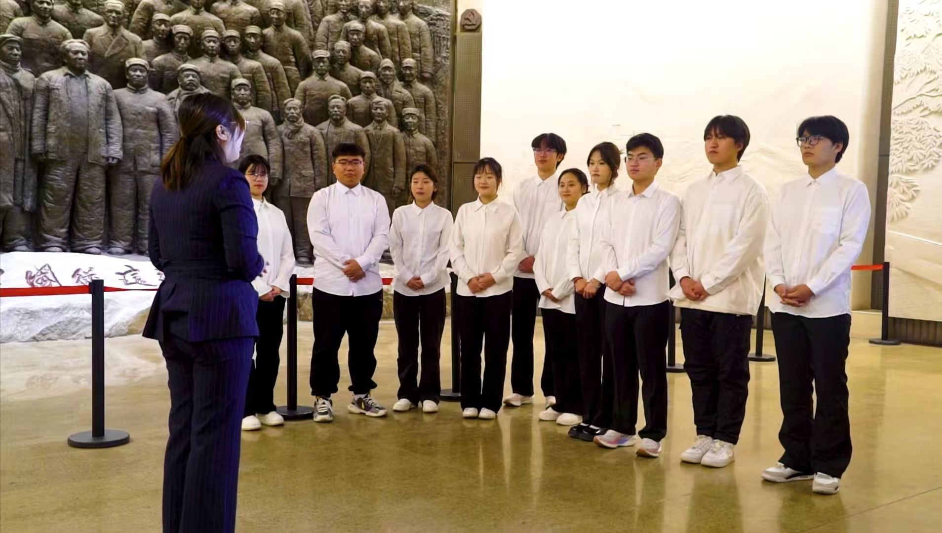 12月16日,马克思主义学院杜冰老师带领传媒艺术系学生走进西柏坡纪念馆开展一场别开生面的“场馆里的思政课”。此次课程是为深入贯彻落实习近平总书记关于“大思政课”的重要指示批示,贯彻落实教育部等十部门印发的《全面推进“大思政课”建设的工作方案》的通知,以及教育部、国家文物局《关于充分运用革命文物资源加强新时代高校思想政治工作的意见》,切实推进“大思政课”建设。