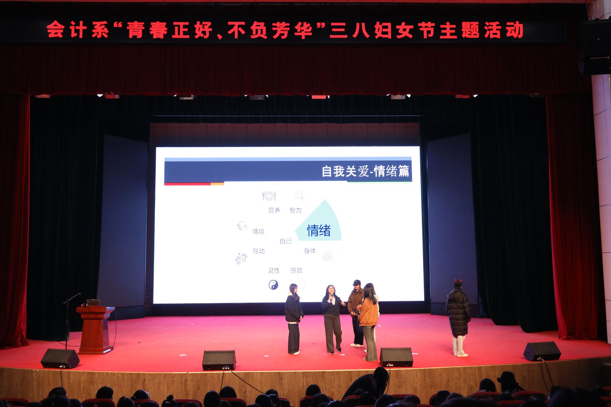 阳春三月,春意正浓,迎来了第115个“三八”国际妇女节。为庆祝这一节日,3月6日下午,会计系精心组织“青春正好 不负芳华”庆祝“三八”妇女节主题系列活动,向全系的女师生们表达节日的祝福。