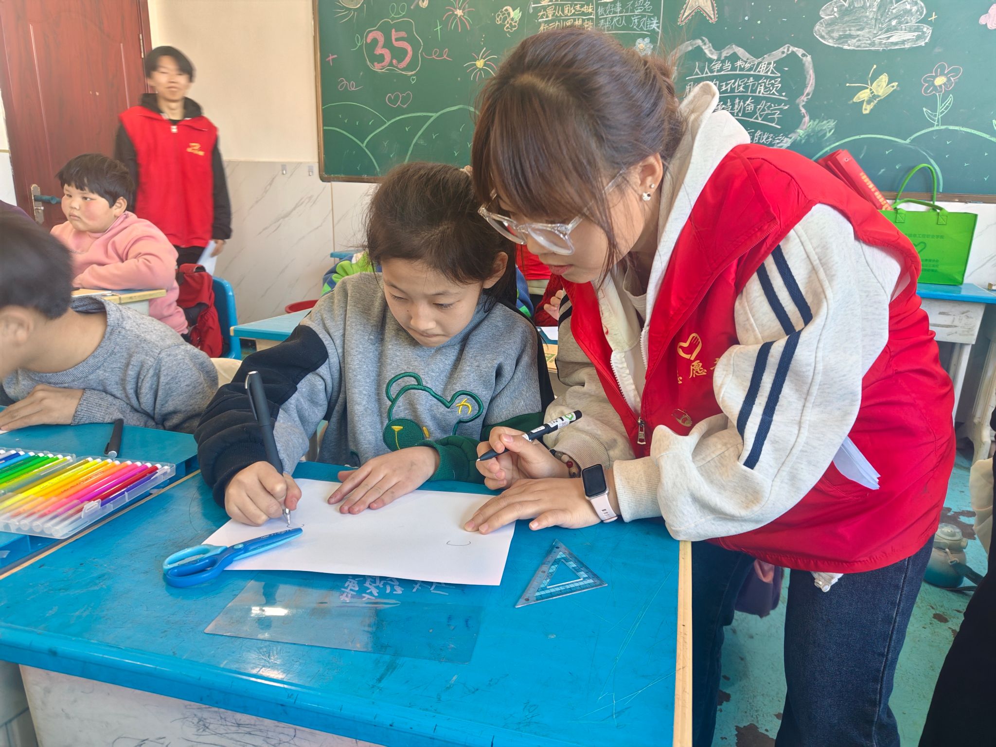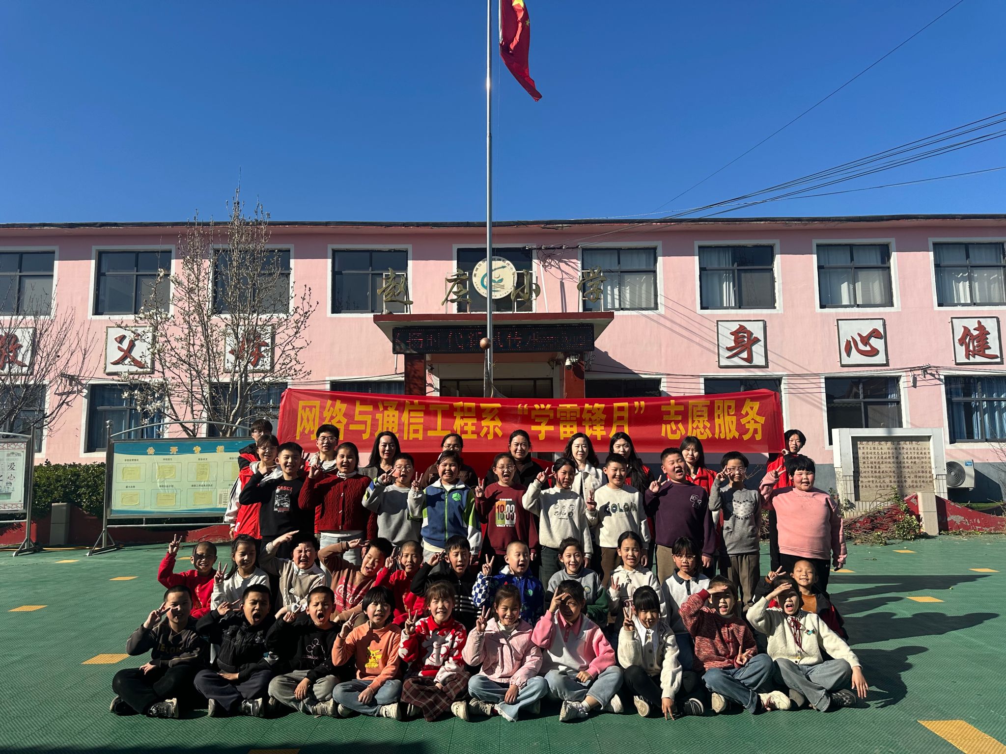 “学习雷锋好榜样,忠于革命忠于党,爱憎分明不忘本……”藁城区张家庄镇赵庄村小学三年级(1)班教室传出阵阵歌声,这里正在进行一场别开生面的“追锋”红色课堂。近日,网络与通信工程系宣讲小组的志愿者们用“青言青语”为同学们创新演绎雷锋精神,架起红色传承的桥梁。